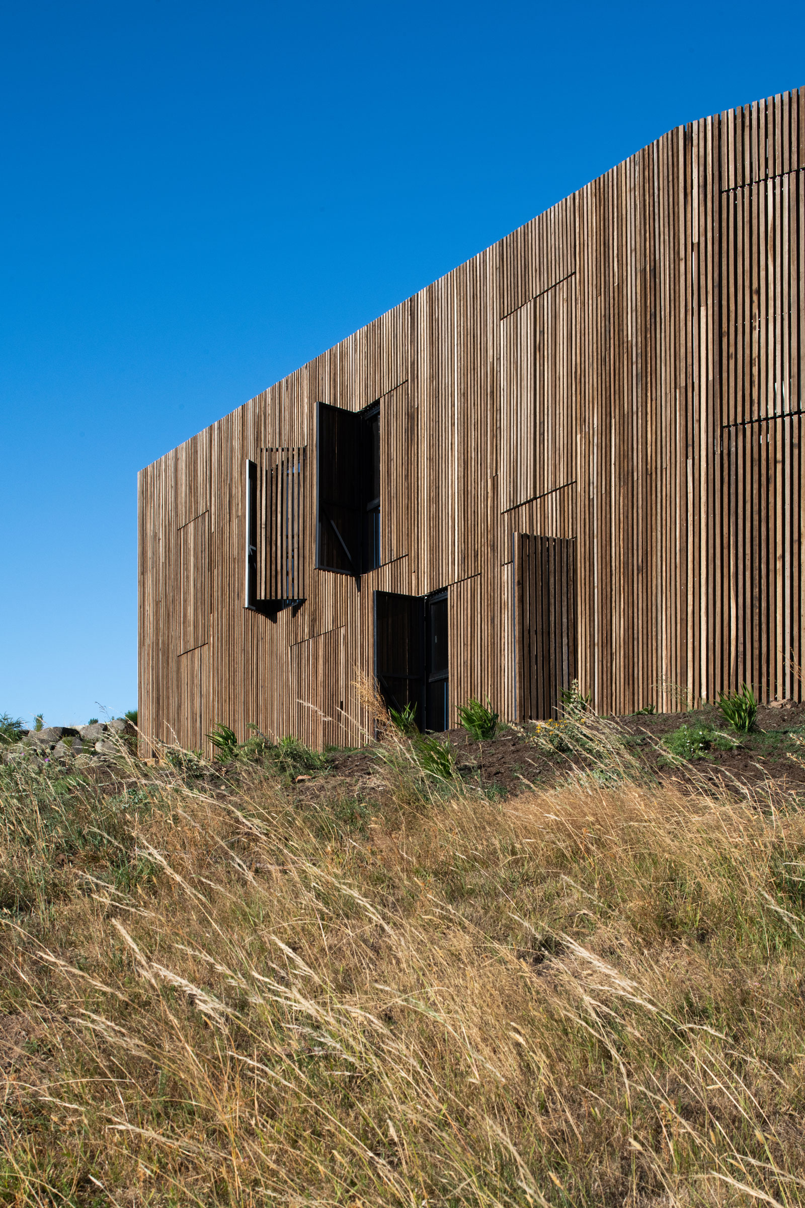 론세스톤에 위치한 리버스톤 레지던스는 탁 트인 전망을 자랑합니다. 언덕 위에 자리 잡은 건축물은 멀리 보이는 에스크 강의 조망을 확보합니다. 내외부 열린 건축환경은 로컬재료를 적용한 공간에서 강화되고, 자연스러운 거주환경을 구현합니다.