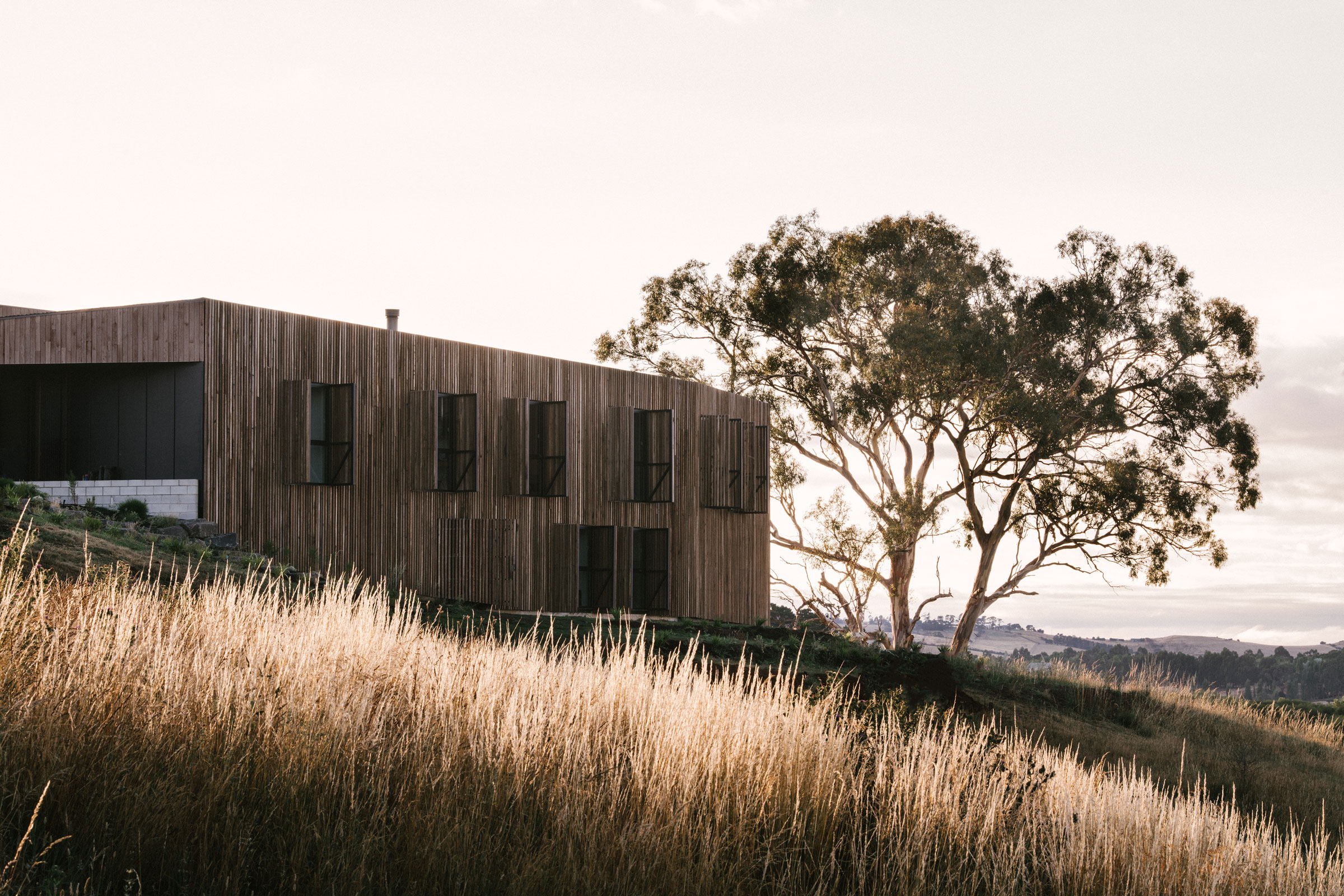 With views out over the landscape, Riverstone Residence optimises its unique siting taking occupation as a considered yet appropriate addition to the native surrounds. Cumulus Studio draws inspiration from the surrounding natural context in the conception of the form, using natural materials and emphasising an indoor-outdoor connection.