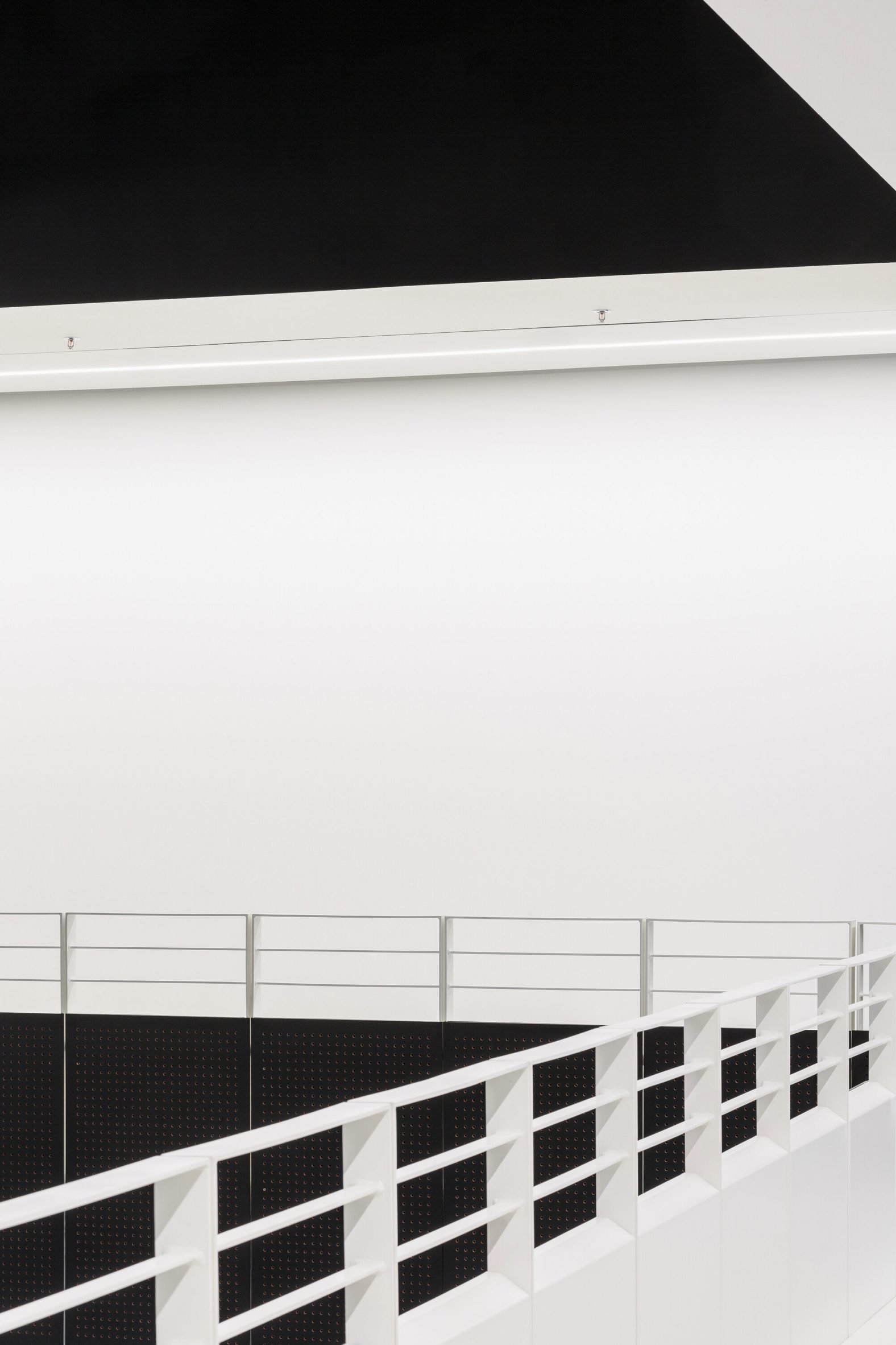Czech architecture studio A8000 has renovated a stepped pavilion in the Czech Republic adding a partially glazed facade and a versatile black-and-white interior.