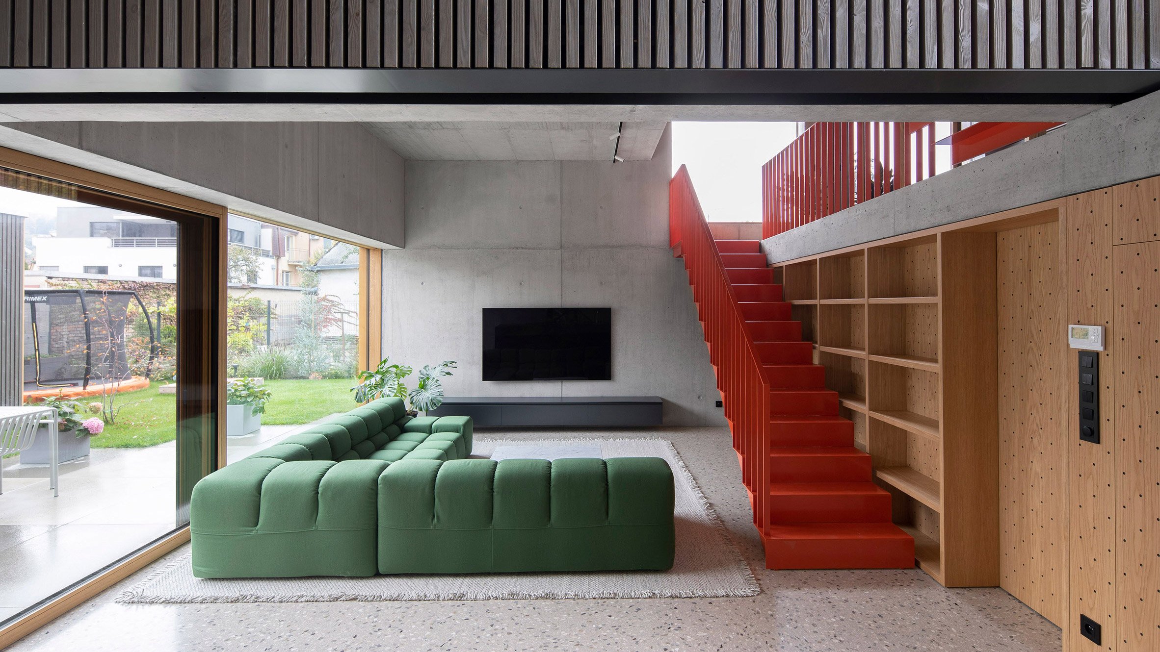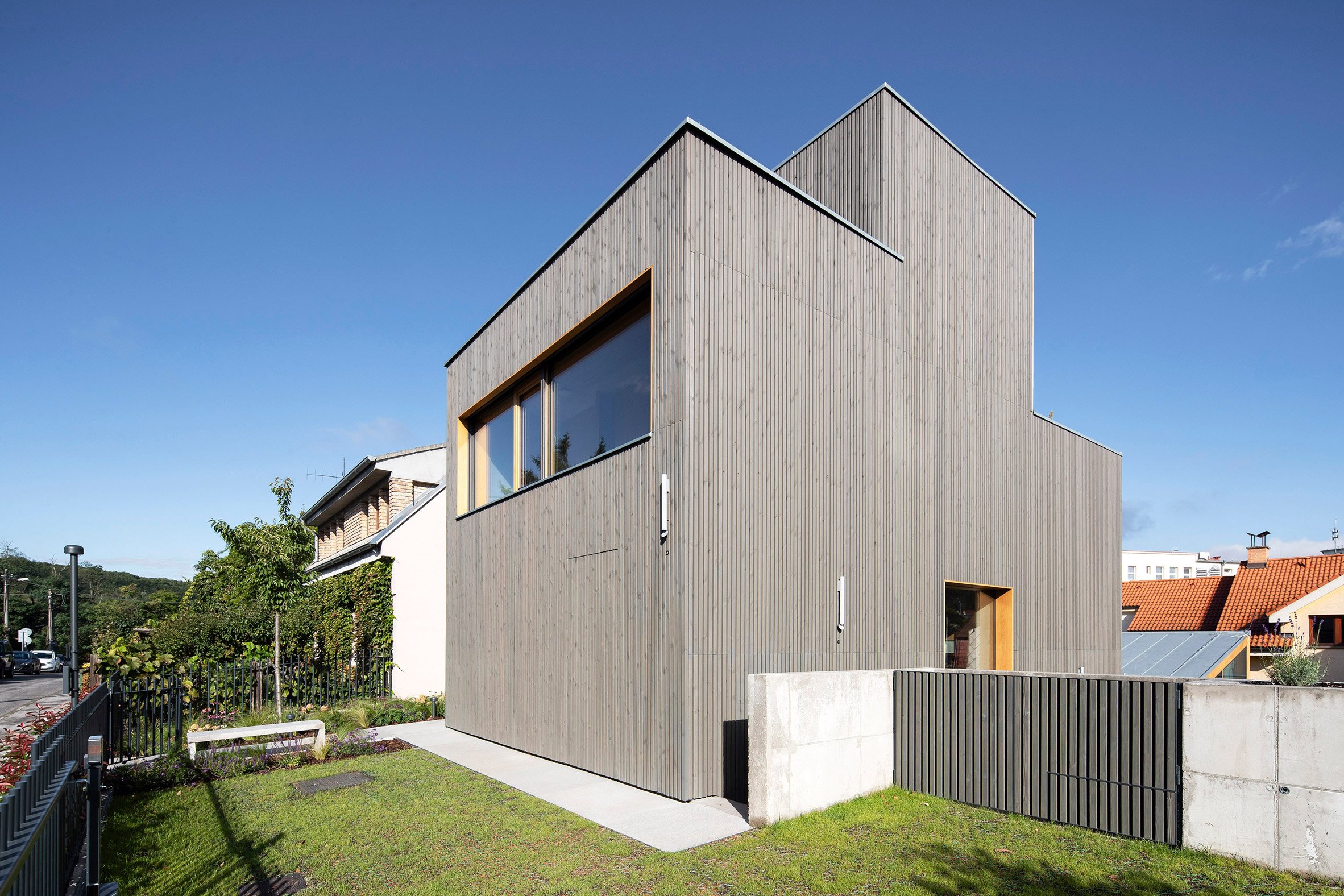 Located in the city's Old Town close to Horsky Park, the site was previously occupied by a single storey family house alongside a garden with a brick shed, structural elements of which have been incorporated into the new home.