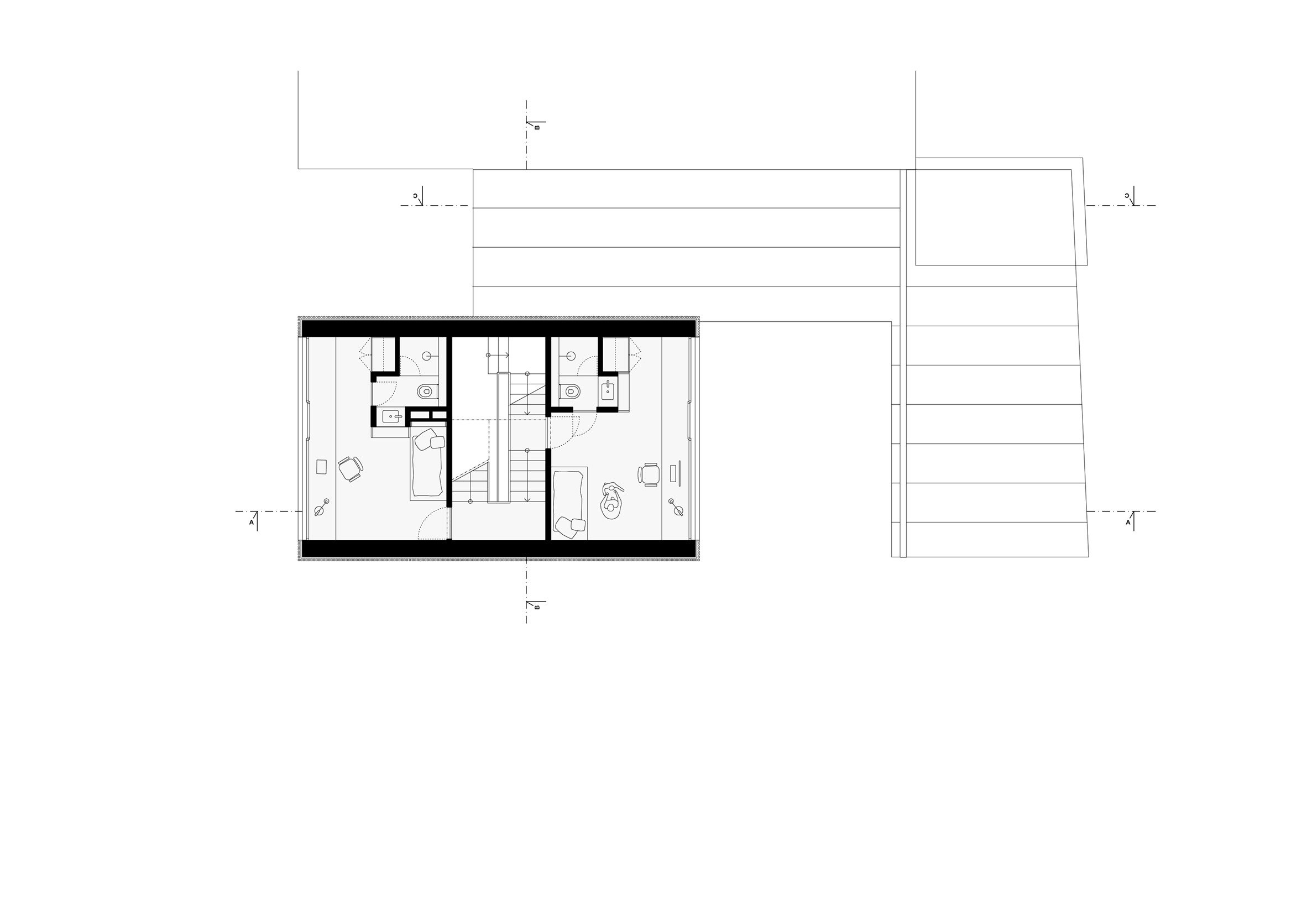 "The first starting point of the solution represented a connection to the original mass of the objects, [and] the second, resulting from this, was the creation of a new layout scheme on their original footprint," it continued.