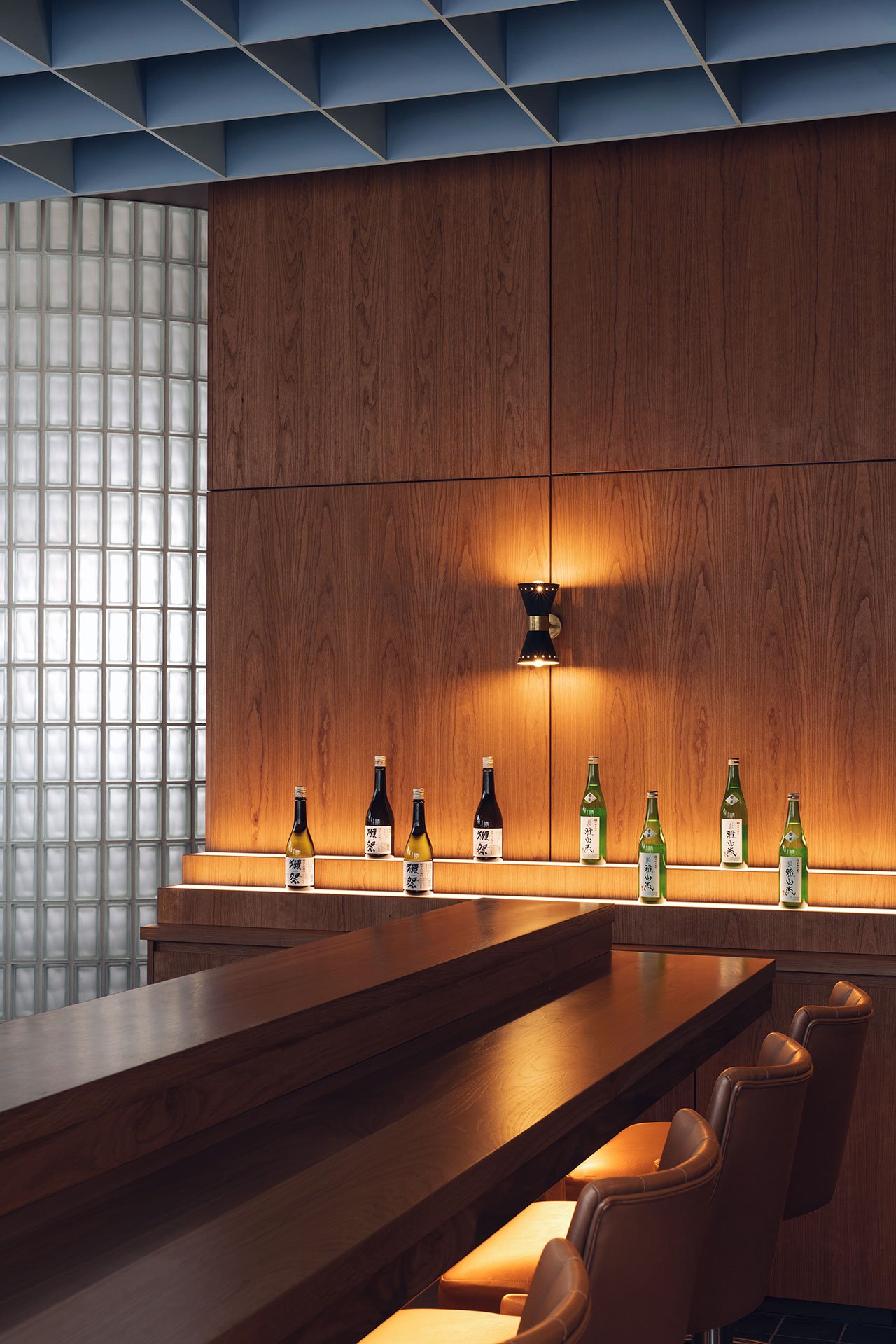 Child Studio’s founders Alexy Kos and Che Huang have subtly blended European and Japanese design elements to create a chic yet inviting space imbued with a sense of mid century modern elegance that pays homage to the building and the neighbourhood’s 1960s modernism as well as complements its culinary ethos without embracing the clichés of Japanese eateries.