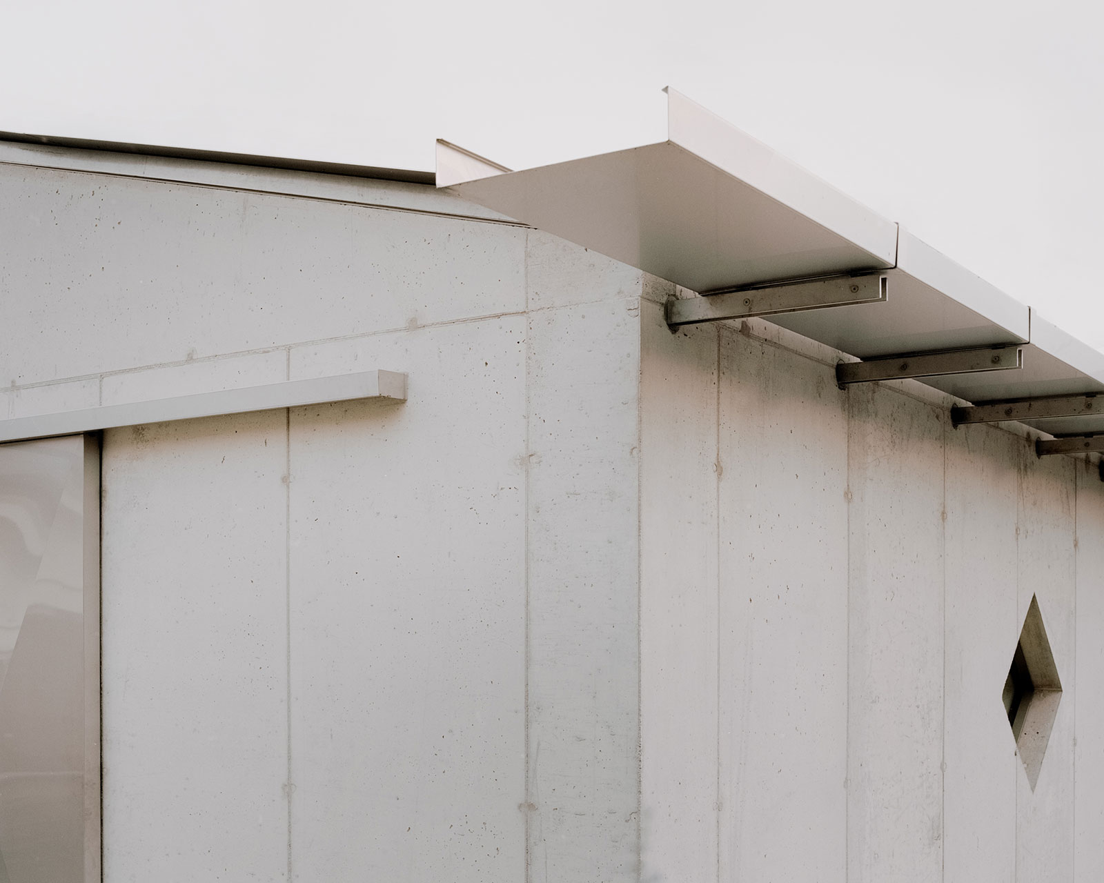 By going back to the glass volume of the entrance, it is possible to distinguish the stair leading to the upper floor. This presence reveals a design operation that made possible the “detachment” of the Liberty building which now hosts the artists’ temporary residence – from the Twentieth-century addition. In that specific position, the stair becomes a key element in re-organizing the syntax of the multitude of stratifications, showing the passage of time. The separation of elements (the villa and the warehouse) is a necessary break: the unpolished façade conveys the power of this break, which is then mitigated by the connection provided by the new stair.