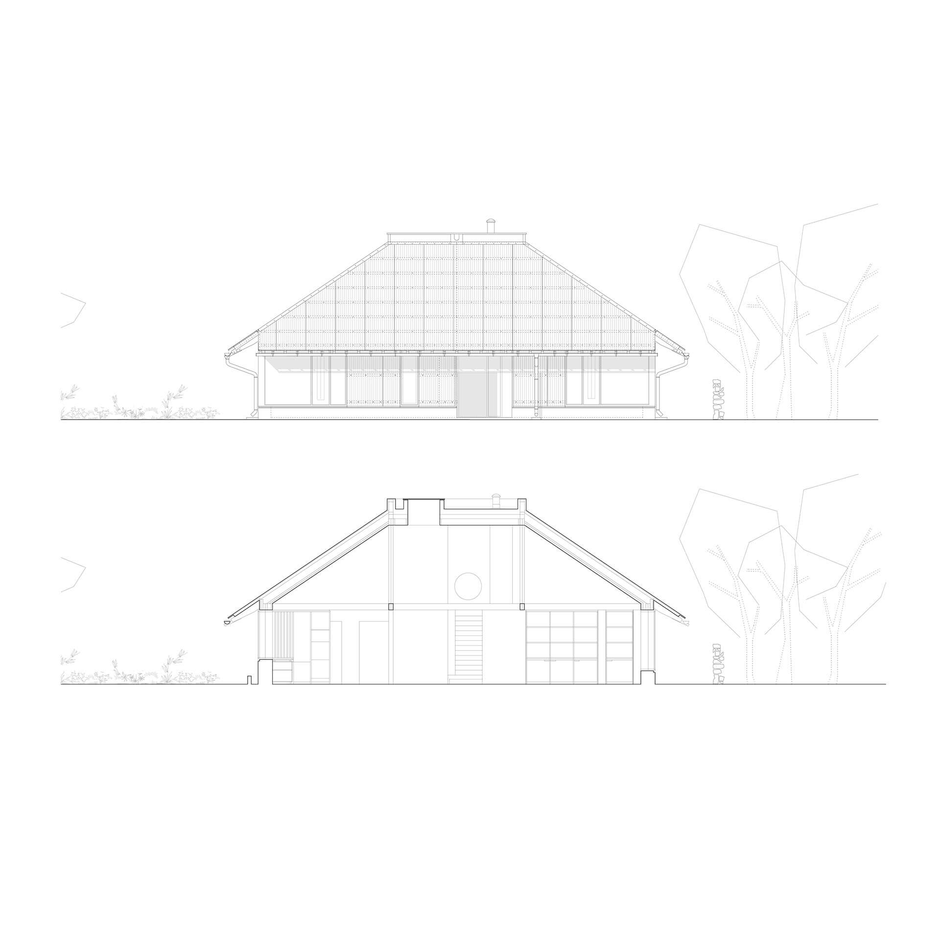 The extension blankets the house to the north for improved thermal performance while an oculus provides direct sunlight to the interior spaces throughout the day.