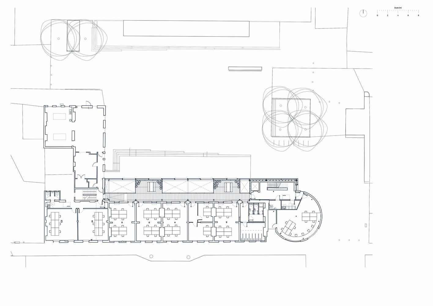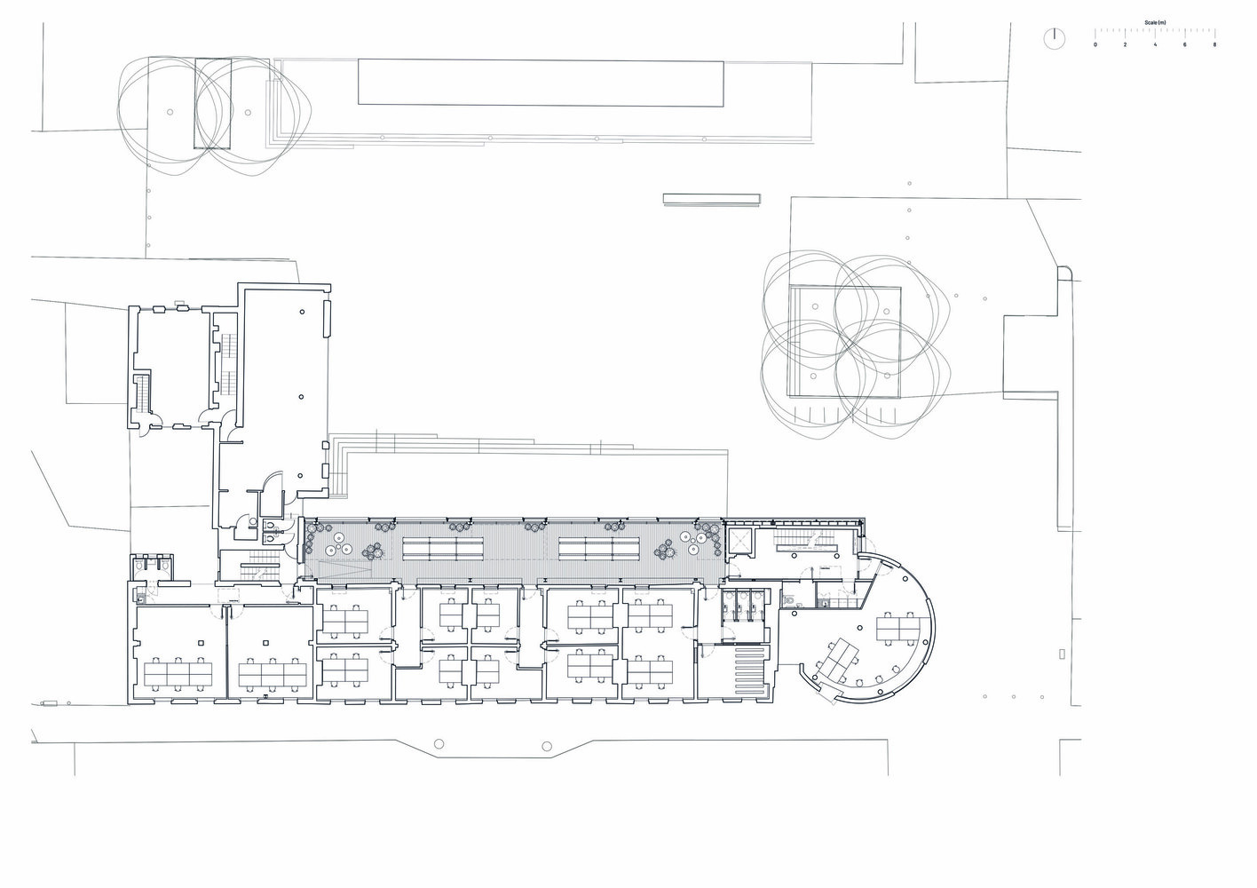맨션의 오리지널 구조체의 기존 빅토리안 테라스는 유지시키는 방향으로 진행, 보수와 리노베이션을 통해 1036m2 규모의 크고 작은 워크스페이스 유닛으로 재구성된다. 그러는동안 브래드버리 거리와 마주한 기존 상가, 바, 레스토랑은 유지시킨다. 이층높이의 외부 테라스는 상부에 위치한 유닛과 연결되도록 재조정한다.