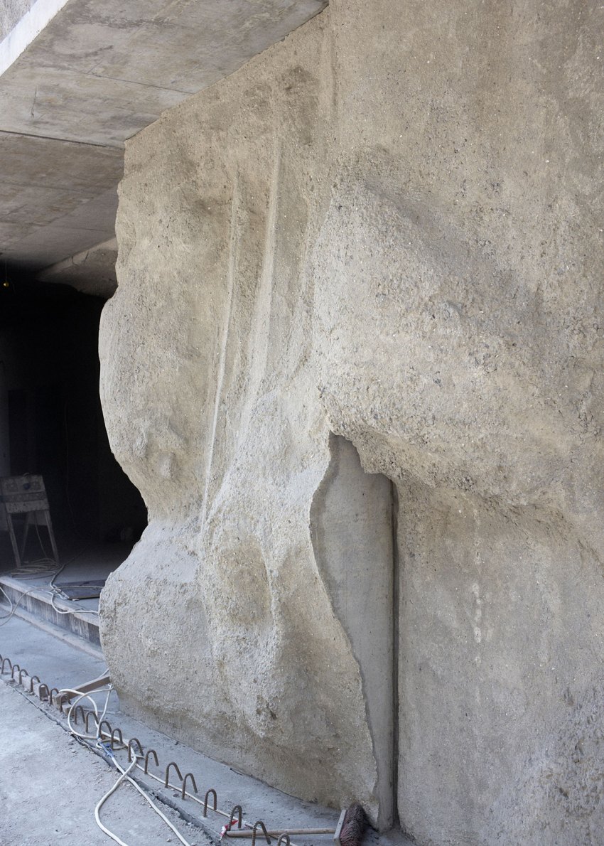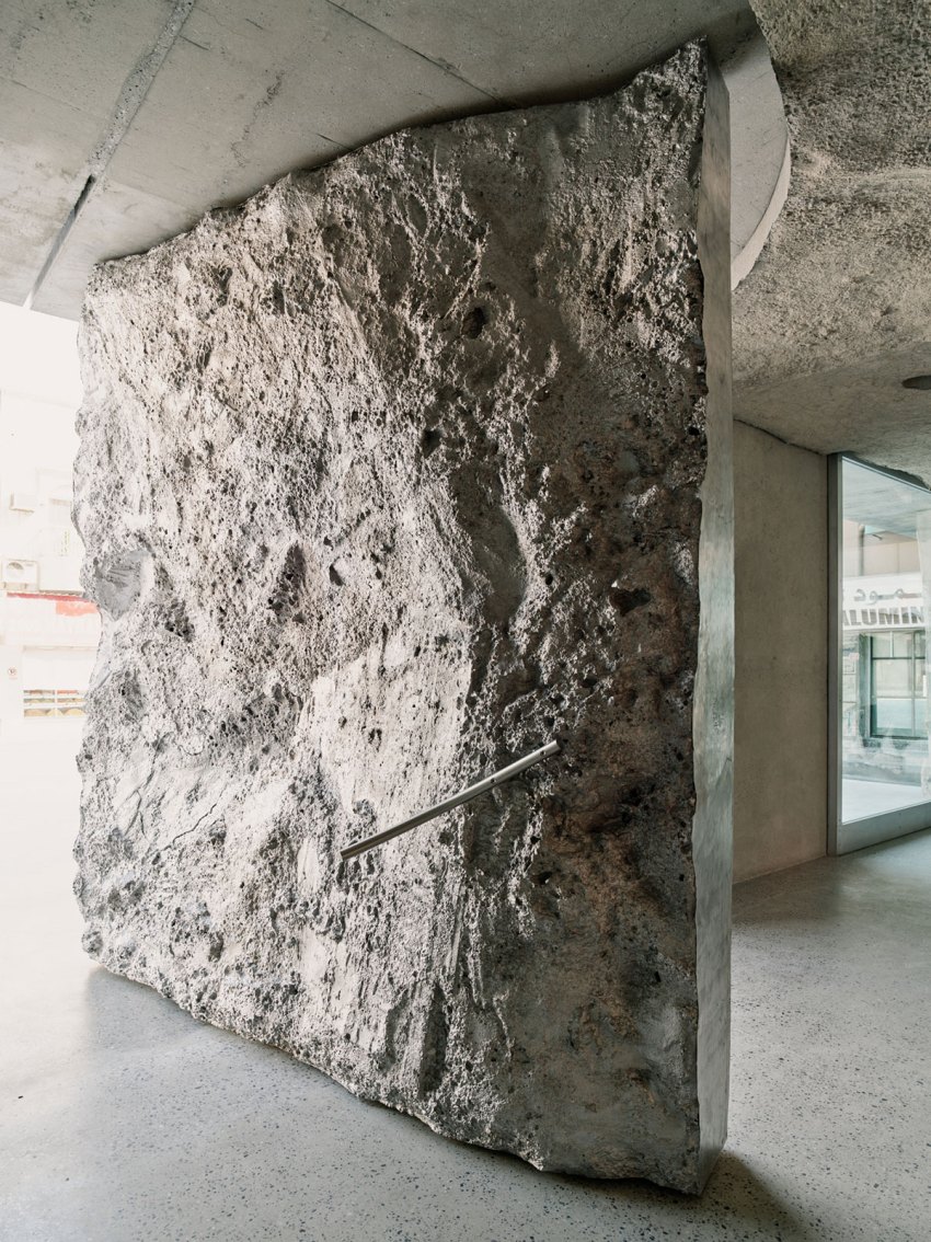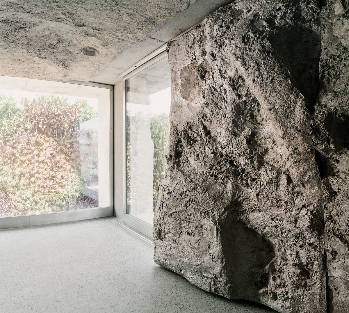 The sand casting technique is also repeated in the concrete floor slabs on the interior, maintaining the building’s unique theme throughout. Large shutters made of sand-casted aluminum with the relief facing towards the interior can be moved in front of the windows, providing natural light and ventilation while offering an artistic touch to the interior space. These aluminum casts are also hollow, allowing the interior of the casts to be seen through the windows.