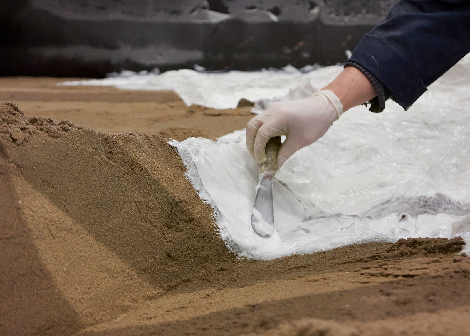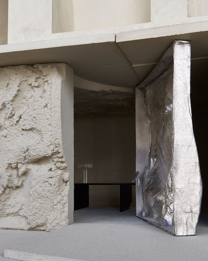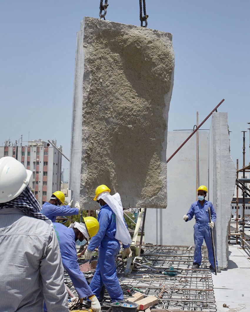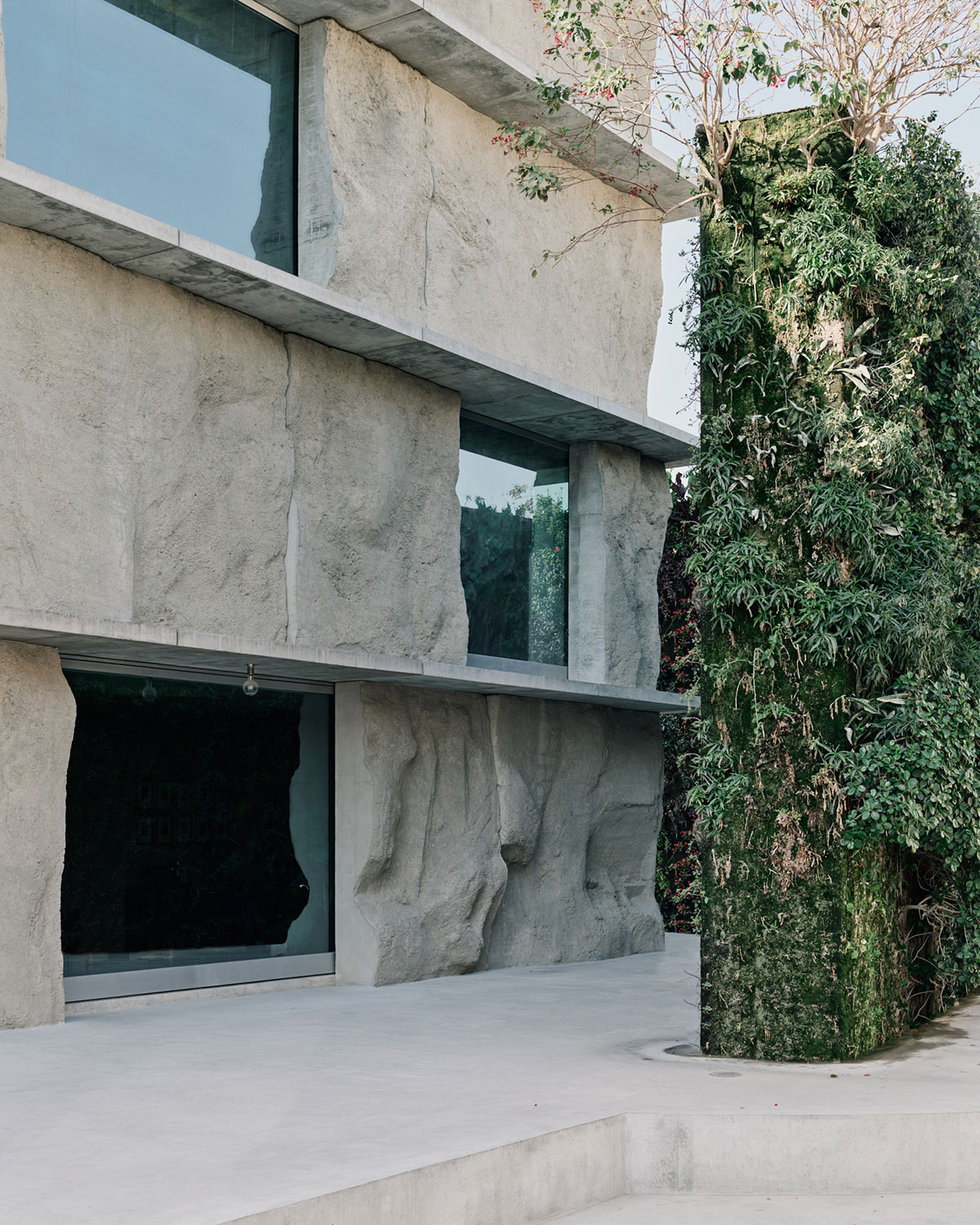 The sand casting technique is also repeated in the concrete floor slabs on the interior, maintaining the building’s unique theme throughout. Large shutters made of sand-casted aluminum with the relief facing towards the interior can be moved in front of the windows, providing natural light and ventilation while offering an artistic touch to the interior space. These aluminum casts are also hollow, allowing the interior of the casts to be seen through the windows.
