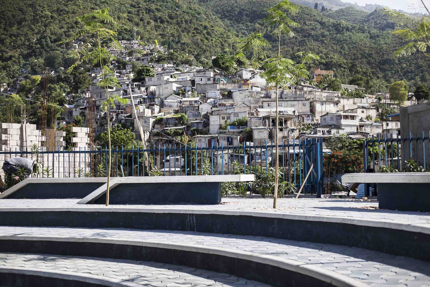 Tapis Rouge is one of several public spaces in Carrefour Feuilles, Haiti, built under program LAMIKA, whose acronym stands for “A better life in my neighbourhood” in Haitian Creole. The program, funded by the American Red Cross and implemented by Global Communities, aims to construct multifunctional spaces that facilitate and promote social cohesion through an inclusive approach.