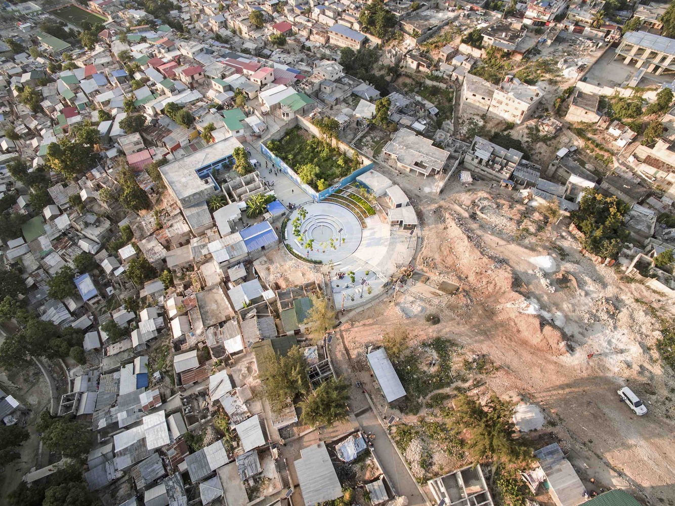 Emergent Vernacular Architecture (EVA Studio)-Tapis Rouge public space in an informal neighborhood in Haiti