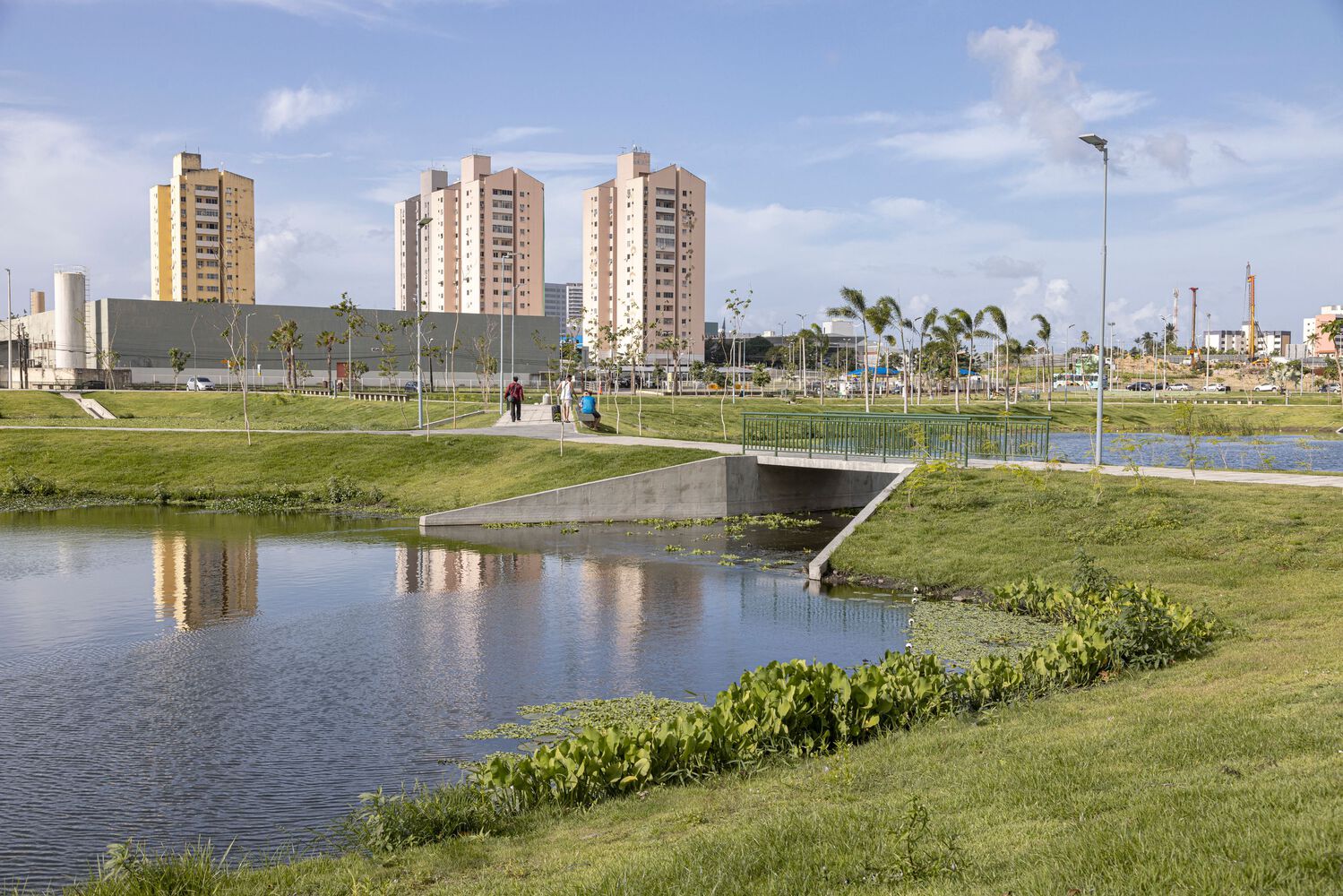 In the early hours of the morning, the movement begins. Regulars in gym clothes choose to start the day by practicing some kind of physical activity. Walking, running, outdoor gym, biking, soccer, and volleyball are just some of the options available. All this takes place on the shores of nine interconnected lagoons, the wetlands. This is just a brief summary of what can be found in the first stage of the Parque Rachel de Queiroz project.