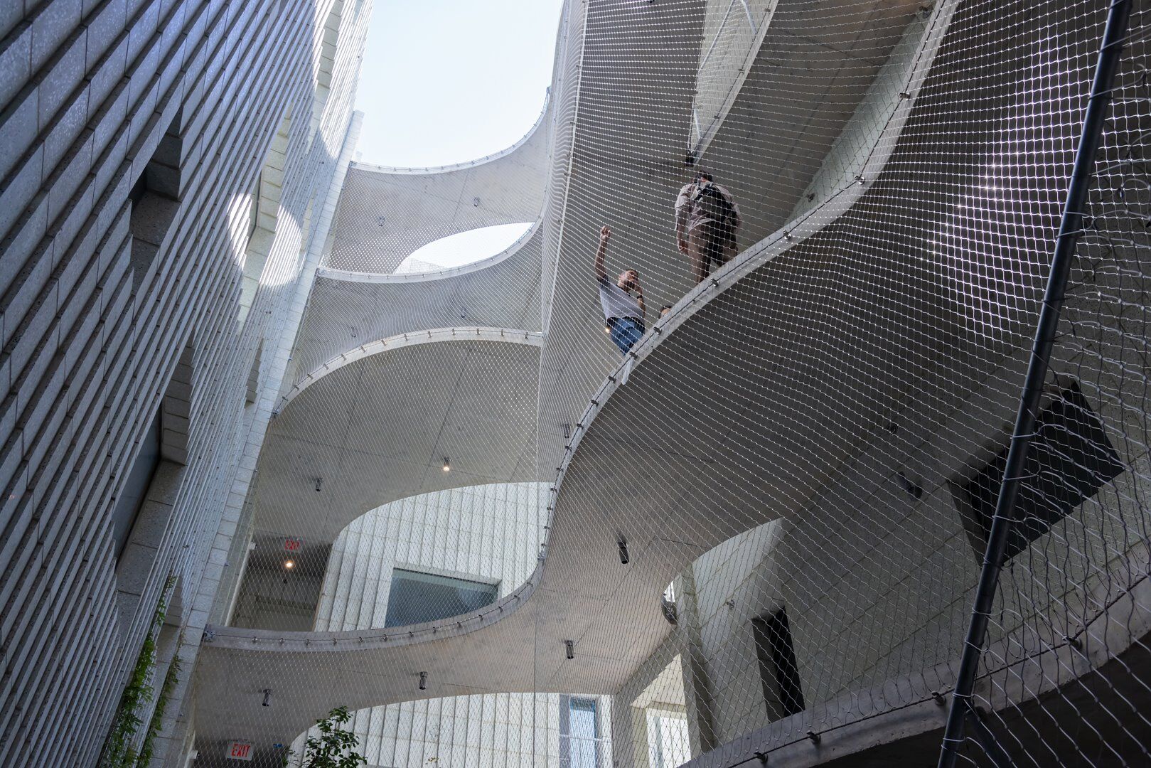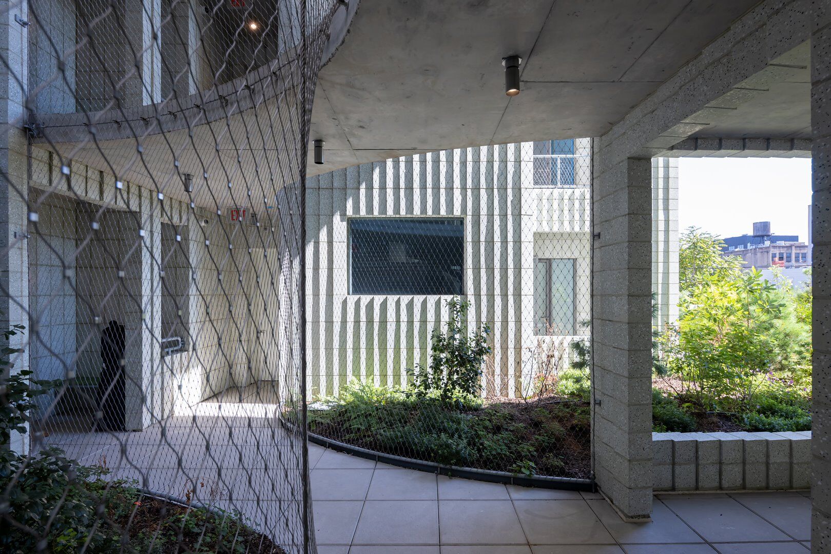 "A community means shared spaces for living and relaxing together, as well as informal interaction," says SO IL. In the interior area, a series of galleries, bridges and stairs provide horizontal and vertical connections, both physical and visual. Here the residents of 450 Warren can see each other walking across the courtyards, or meet in the garden or in "the shared corridor" of the building. Nets as partitions instead of walls provide vistas and light.