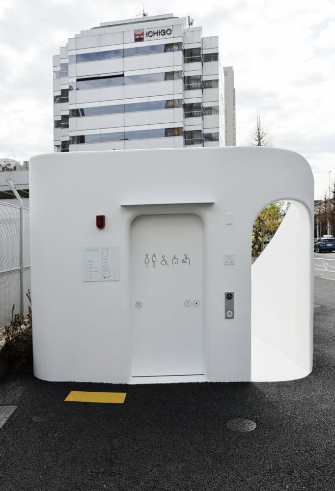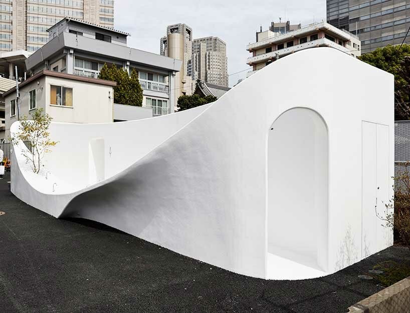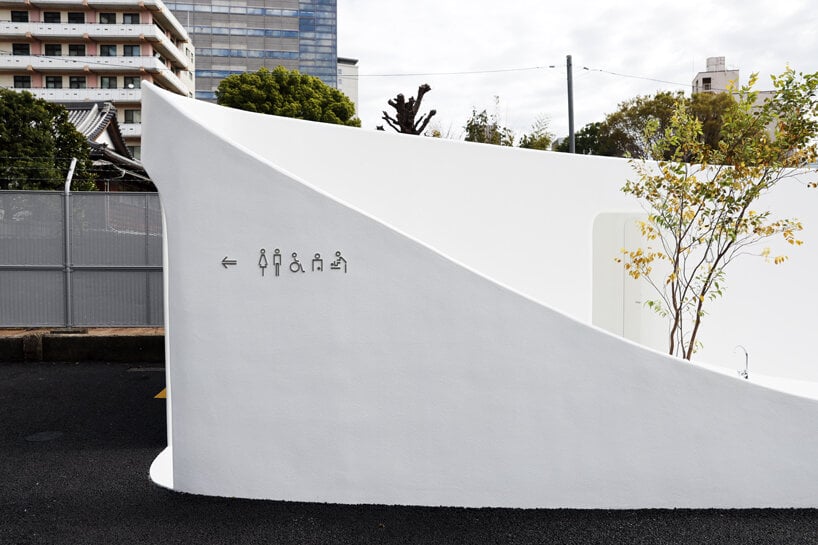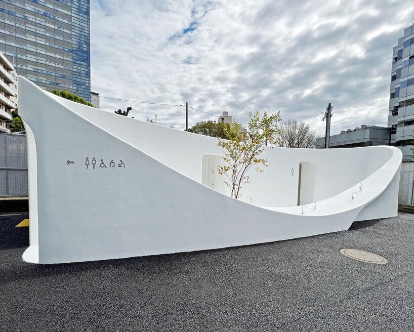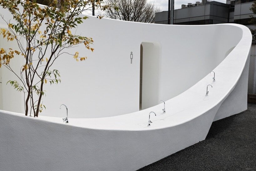 As part of ‘The Tokyo Toilet‘ initiative, Sou Fujimoto has completed the design of a new restroom on the shopping street of Nishisando, Japan. Taking shape as a giant washbasin amid the busy neighborhood, its curvaceous silhouette stands out discreetly against the large buildings on the backdrop. The design team sought to form a ‘vessel open for everyone’ with a recessed center that can host people of all ages,‘ becoming part of our lives’.