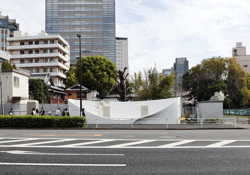 ‘In the concept phase, we spent a lot of time developing various ideas on how to shape the public nature of the toilet. This process wasn’t easy. After testing different shapes and sizes, we opted for a structure reminiscent of a large water vessel. It was challenging to achieve the shape exactly as designed during construction, so our team and Daiwa House, who did the construction, were on site, supervising the progress. After we reached the desired form, we focused on details and fine adjustments, achieving the visible high quality,’ Fujimoto said to designboom.