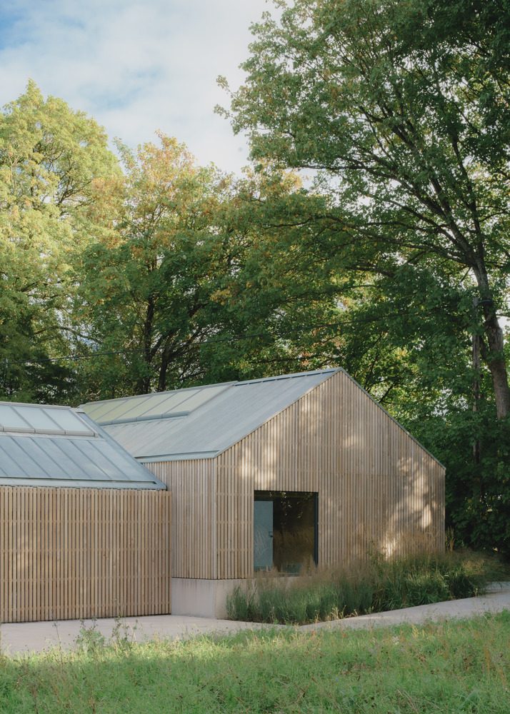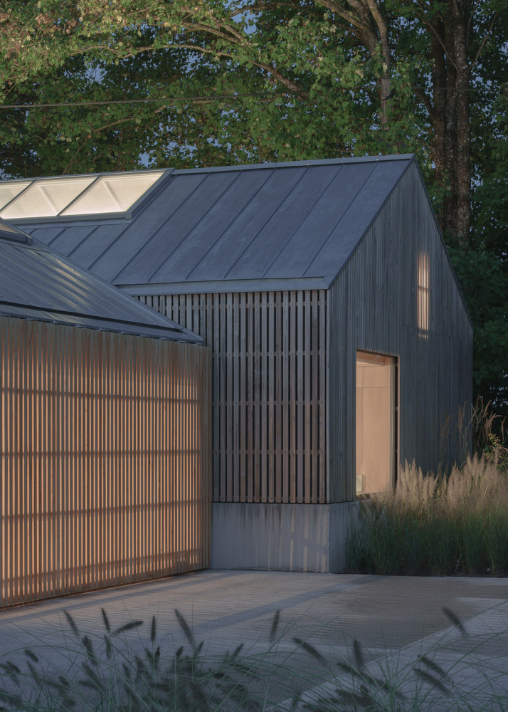 빈들로스 도시 건축사무소는 고객의 클래식 자동차 컬렉션을 보관할 수 있는 5베이 크기의 차고와 워크샵공간을 완공했다. 우드 팀버를 이용하여 구축된 우아한 목조건물은 나무가 울창한 서머셋 마을의 외곽에 위치한다. 건축가는 건물의 사용연한에 따라 유연하게 사용할 수 있도록 '롱-라이프,루즈-핏' 프로그램을 제안하여, 건축주의 삶에 맞춤공간을 설계하였다.