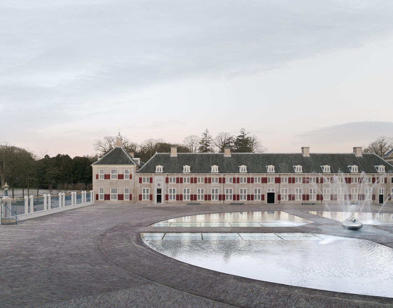 Paleis Het Loo was initially constructed in 1686 as a royal hunting palace for King William III and Queen Mary on the outskirts of Apeldoorn. The property's ample forest grounds and necessary underground water pressure created ideal conditions for a baroque composition of lush gardens punctuated with numerous water features and a monumental palace at its base. KAAN Architecten's intervention draws from this inextricable connection between architecture and the landscape. The entire extension is placed underground, and the new water feature is integrated as part of the architecture, continuing the tradition of the overall composition without disrupting the historical image.