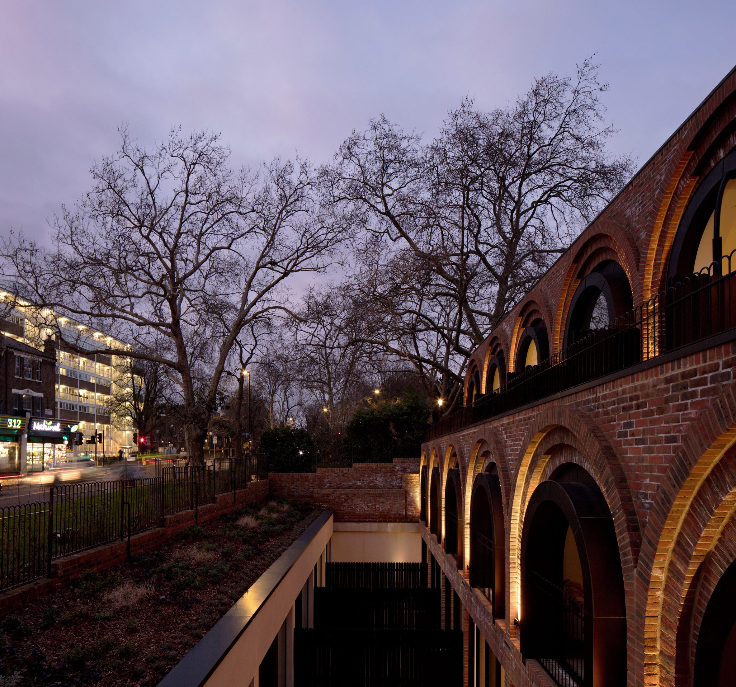 A key aspect was the decision to partially sink the buildings below ground, so the roof is no higher than the petrol station that occupied the site previously.