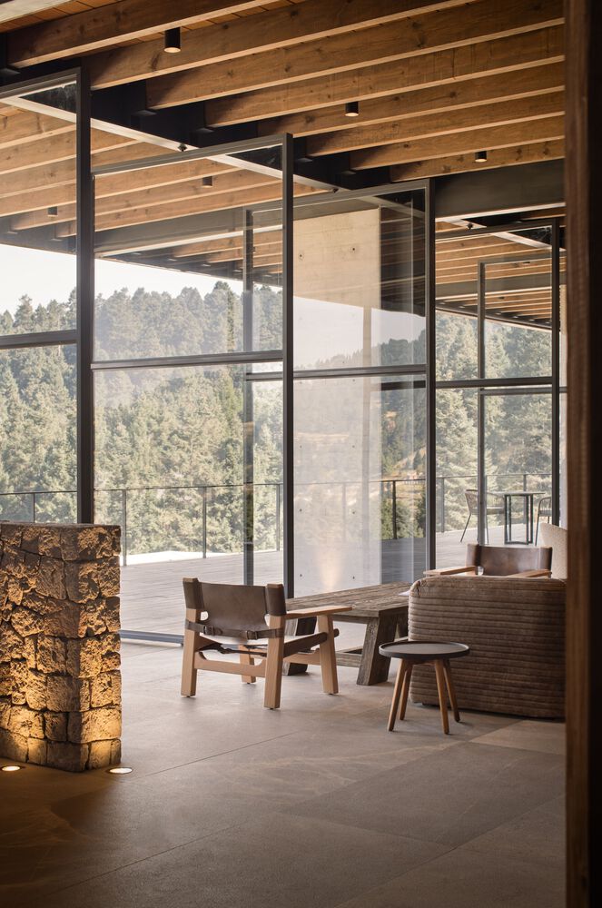 The project seeks to alter the site as little as possible, using materials such as stone and wood, and seeking a contemporary language that is also appropriate for the context. The distribution of the clubhouse is mainly governed by a central courtyard that creates an atmosphere that invites contemplation of the landscape framed by stone walls that also divide and create a transition of access between the public and private space.