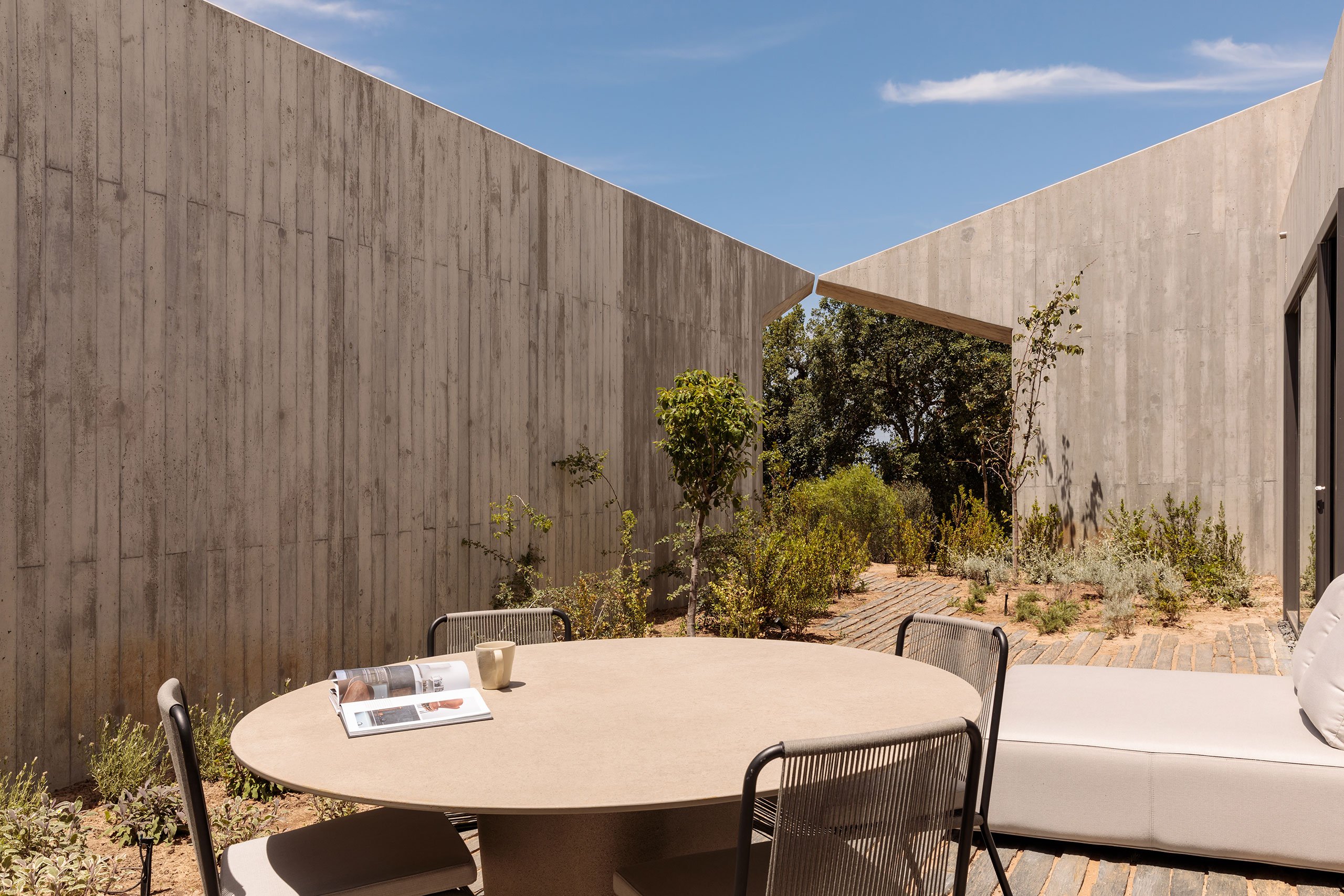 Courtyards are a key feature of the region’s vernacular architecture going back to the Romans and Arabs, as they reduce sun exposure, promote passive cooling and improve the property’s microclimate, while in the countryside they also serve as a transition zone between the interior and nature itself. It was therefore important to Sofia and Miguel that they were incorporated into the design of the houses, whilst introducing a contemporary feel and look in reflection of their modern vision of hospitality.