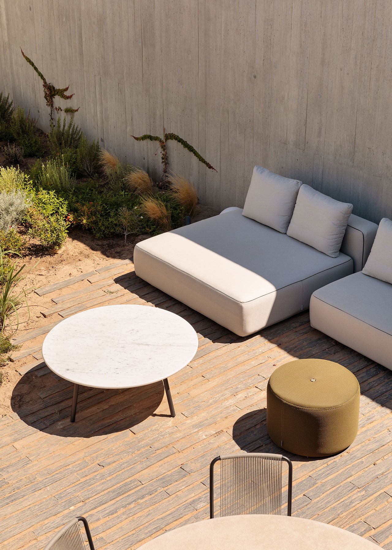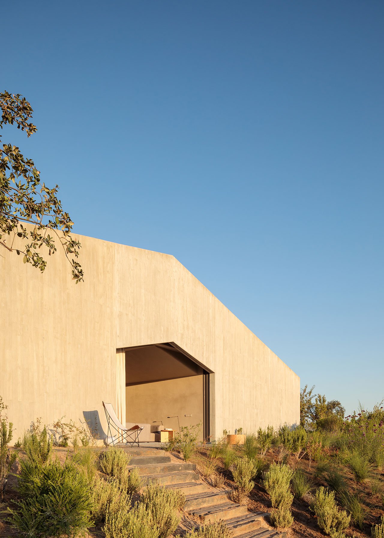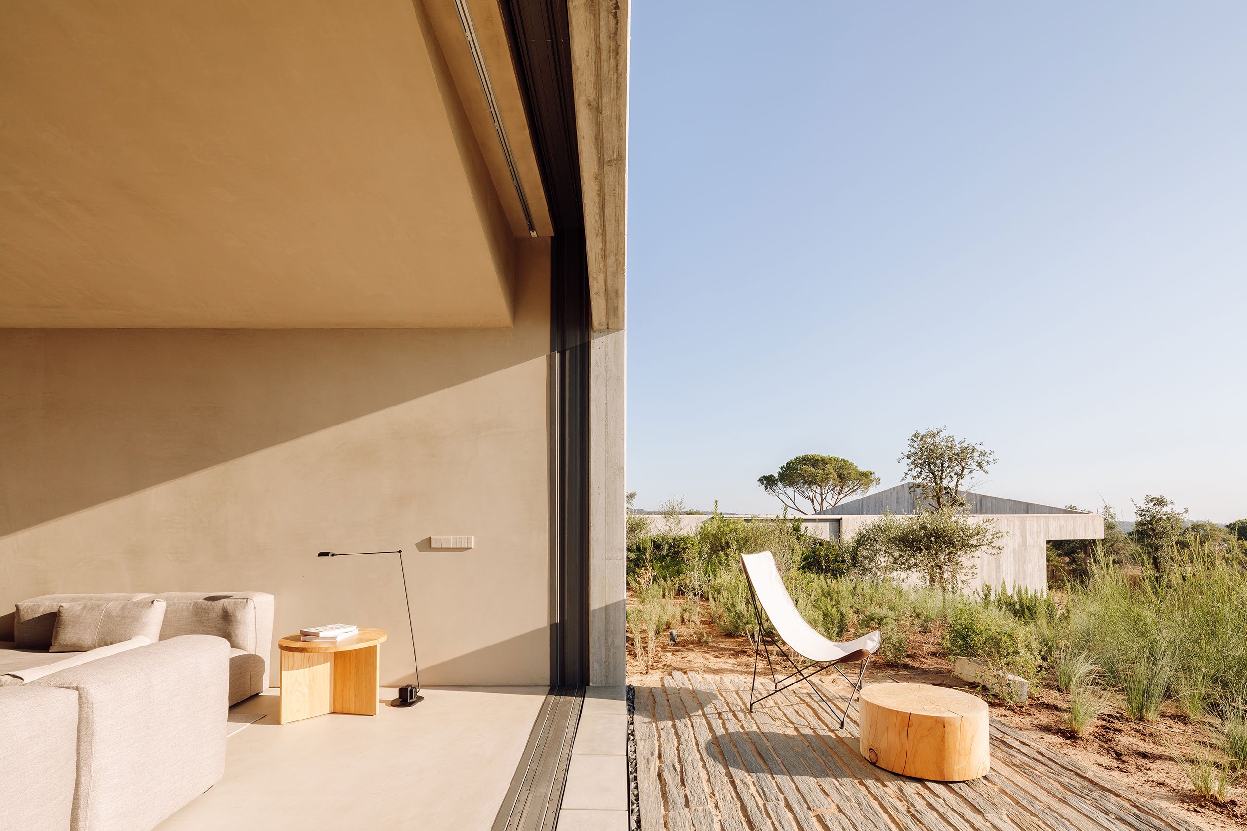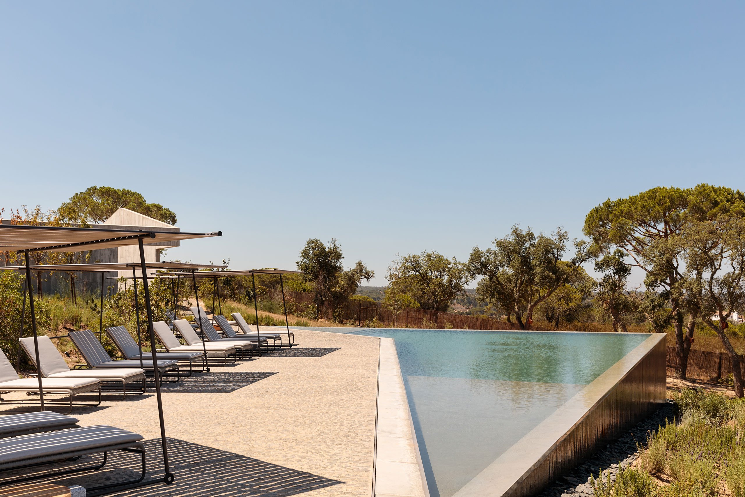 Conceived as a home away from home, the concrete houses were designed by Portuguese architect Manuel Aires Mateus to take full advantage of their location in between the countryside and the beach. Featuring a series of courtyards, or pátios in Portuguese wherefrom the project takes its name, the houses enjoy privacy but at the same time are intimately connected with the surrounding landscape, a medley of pine forests, olive groves and vineyards by the Atlantic Ocean. Starkly minimalist in architecture and soothingly ascetic in aesthetic, a homey sense of warmth nevertheless prevails thanks to the workmanship of local carpenters, stucco craftsmen and stonemasons, as well as personal touches like artworks and books handpicked by the owners. With carefully framed views of the surrounding nature from the interiors and sweeping ocean vistas from the communal swimming pool hovering above the coastal plain, Pa.te.os revels in Alentejo’s untamed beauty while fostering peacefulness and contemplation.
