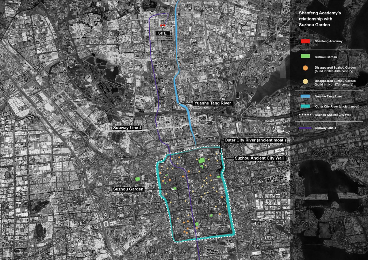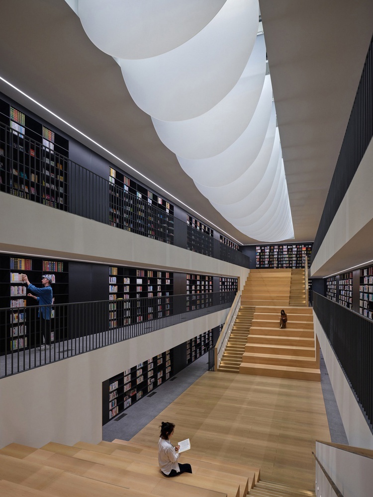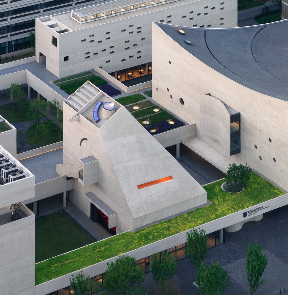 Situated in a new district of Suzhou, Shanfeng Academy is the Cultural and Sports Center for Mountain Kingston Bilingual School, it also serves the local community as an active cultural hub. The architect is deeply influenced by the Chinese landscape drawings that have intricately intertwined and the seemingly endless flow of time and space, especially in the intentionally un inked areas which mitigate the changing views, space, and events. This is also a building that pays tribute to the traditional Suzhou Gardens while directly confronting contemporary urban and educational challenges—it strives to maximize spatial potential in order to accommodate the large user population with a wide range of activities, all in the confine of a rather small piece of land.