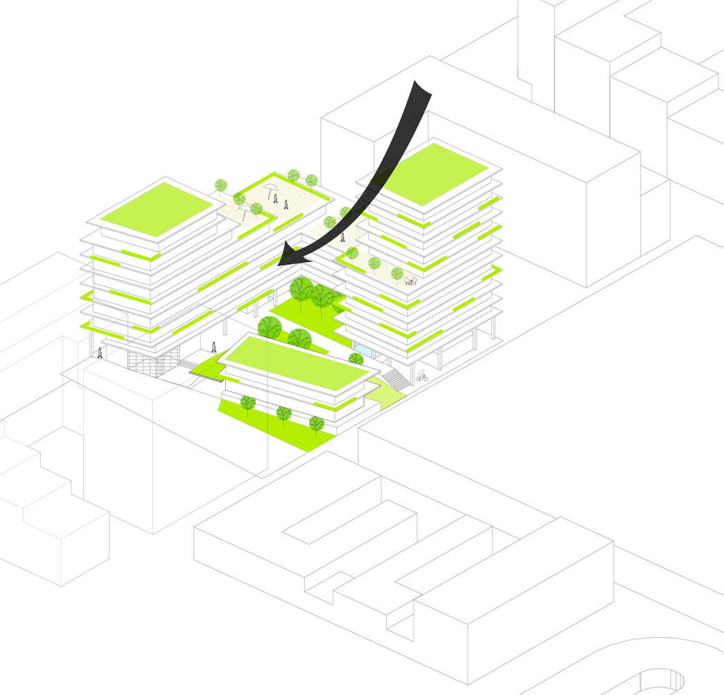 The project’s design demonstrates a willingness to engage in a dialogue with its surrounding environment. It introduces a new way of communal living by offering maximal exterior private and collective space.