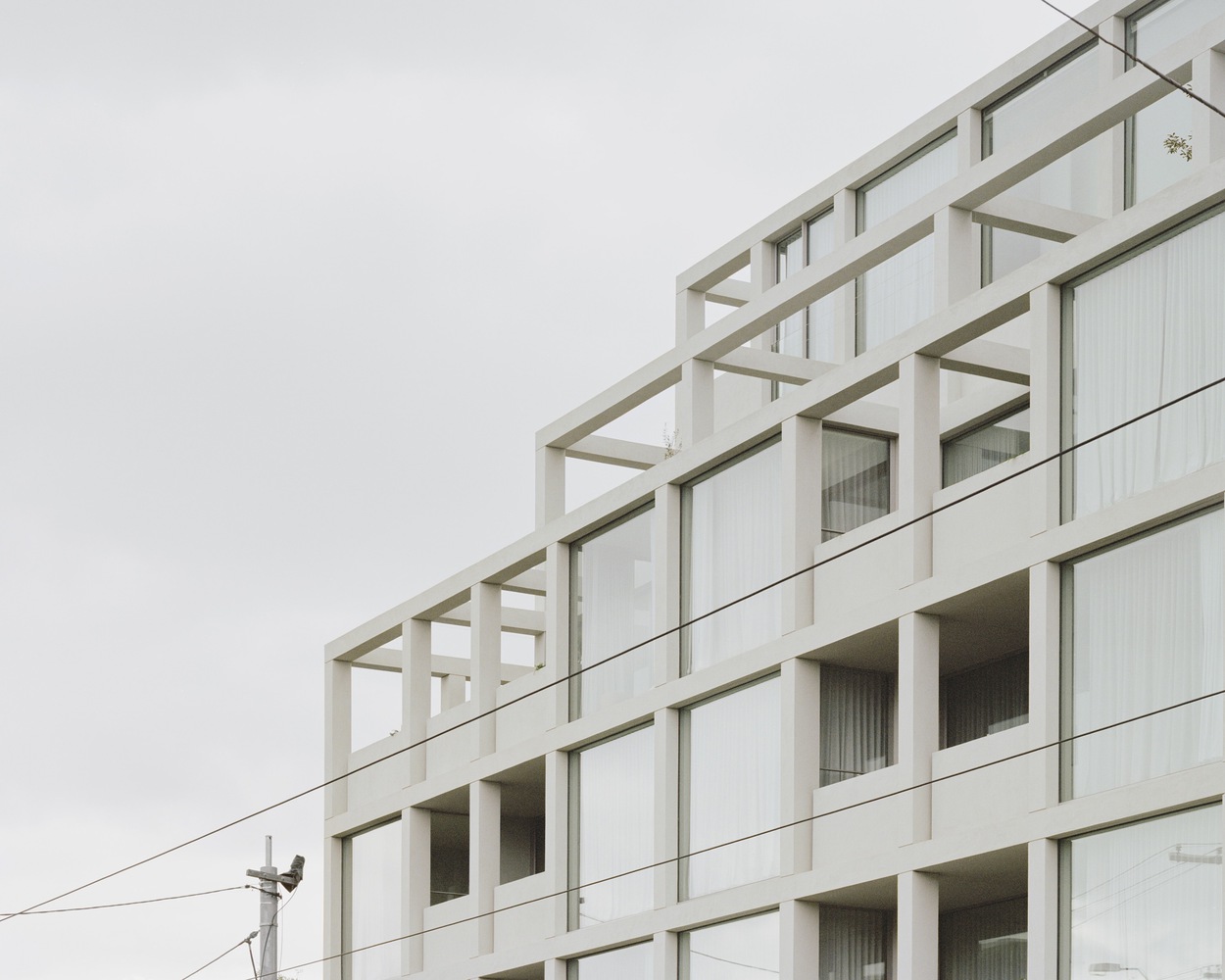 Interiors - The design intent was to achieve a sense of continuity between the interior and exterior spaces. The static repetition on the facade is in constant conversation with the internal spaces and provides a simple principle of composition. This affords a sense of coherence and equilibrium between the architecture and interiors. The palette of interior materials and finishes is akin to the external a sense of order and symmetry. The texture of the external is brought internally through common spaces and as you enter each apartment that sense is heightened through soft greys and muted tones which helps extenuate the view beyond. The seasonal change to that view acts as a picture frame.