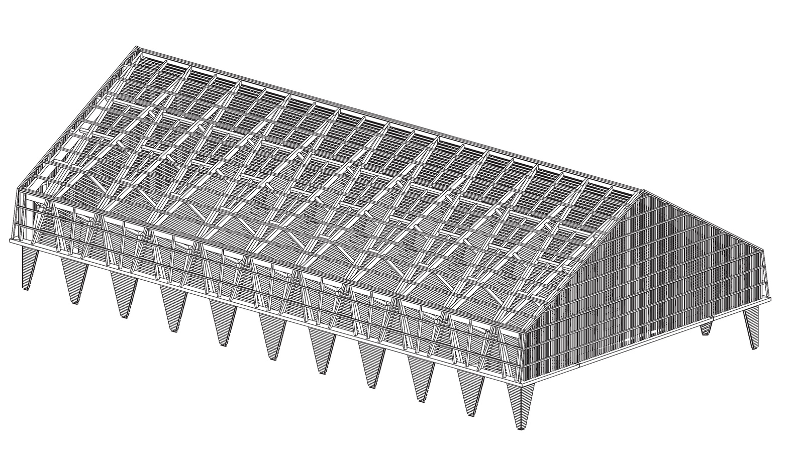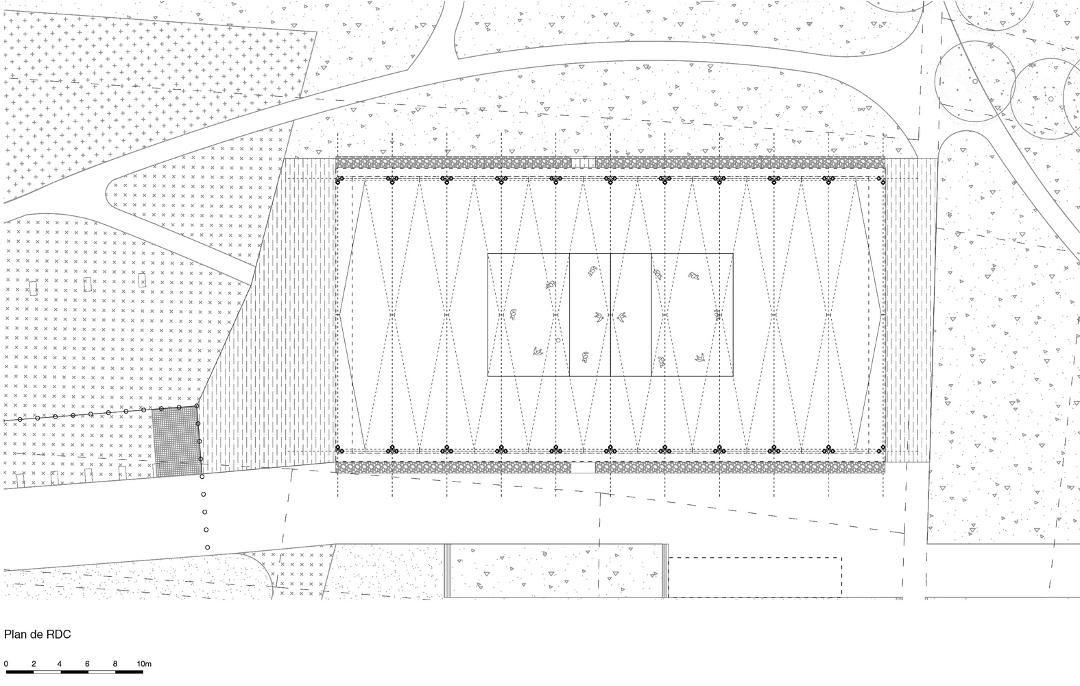 The structure of the building is composed of 9 spans placed every 4 meters and they are based on 20 concrete bases that are buried 1.5m into the ground. The floor is a huge concrete slab that gives flexibility to multiple activities.