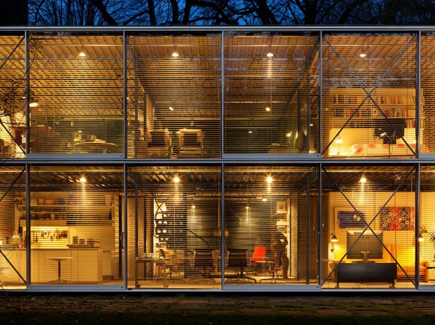 The two storey, lightweight steel and glass structure was built as the Hopkins' family home and as the office of their own architecture studio, which they established the same year the house was completed.