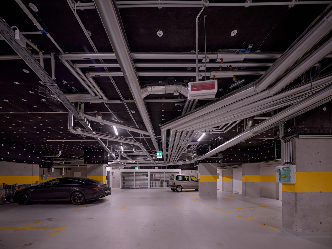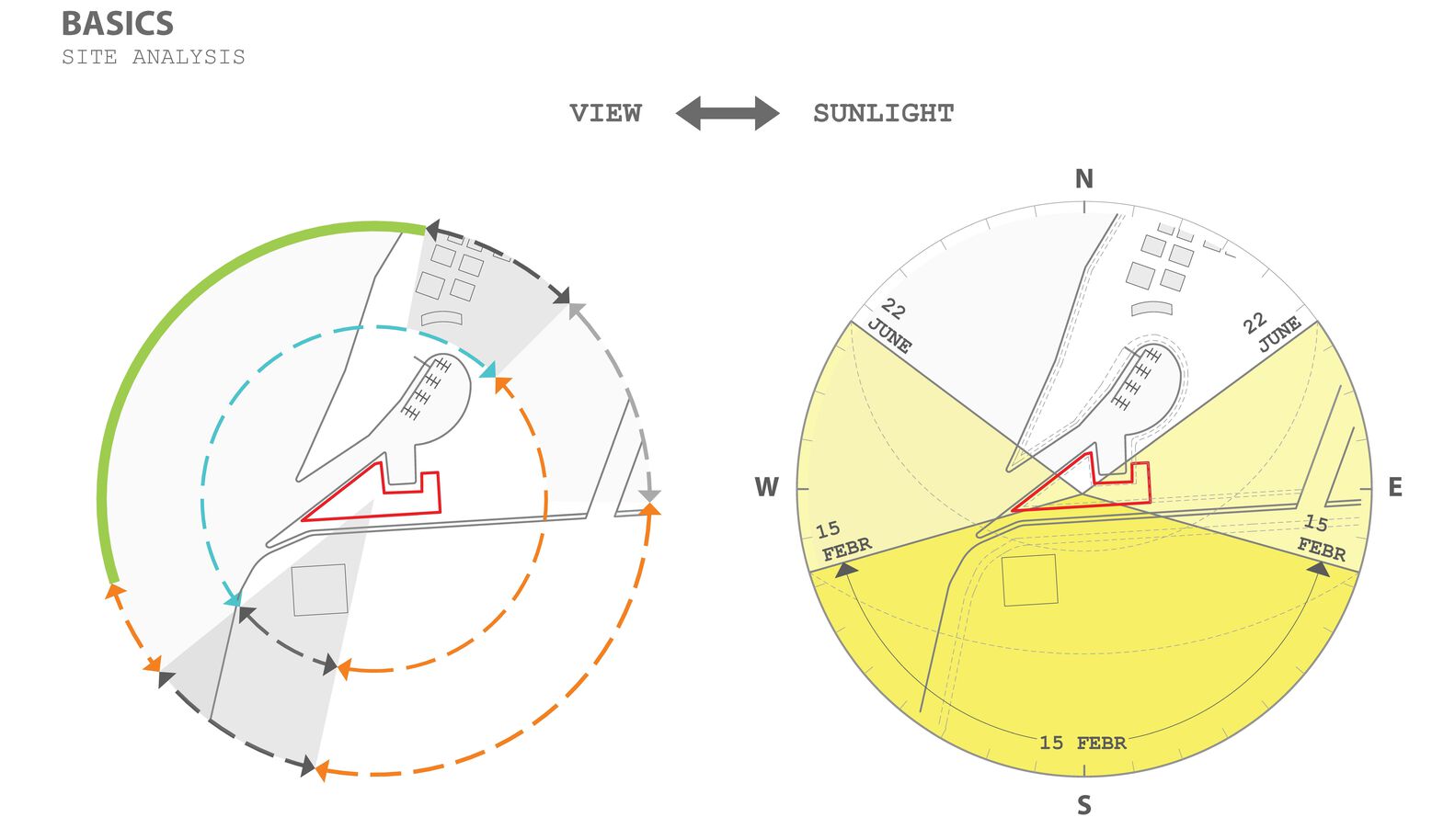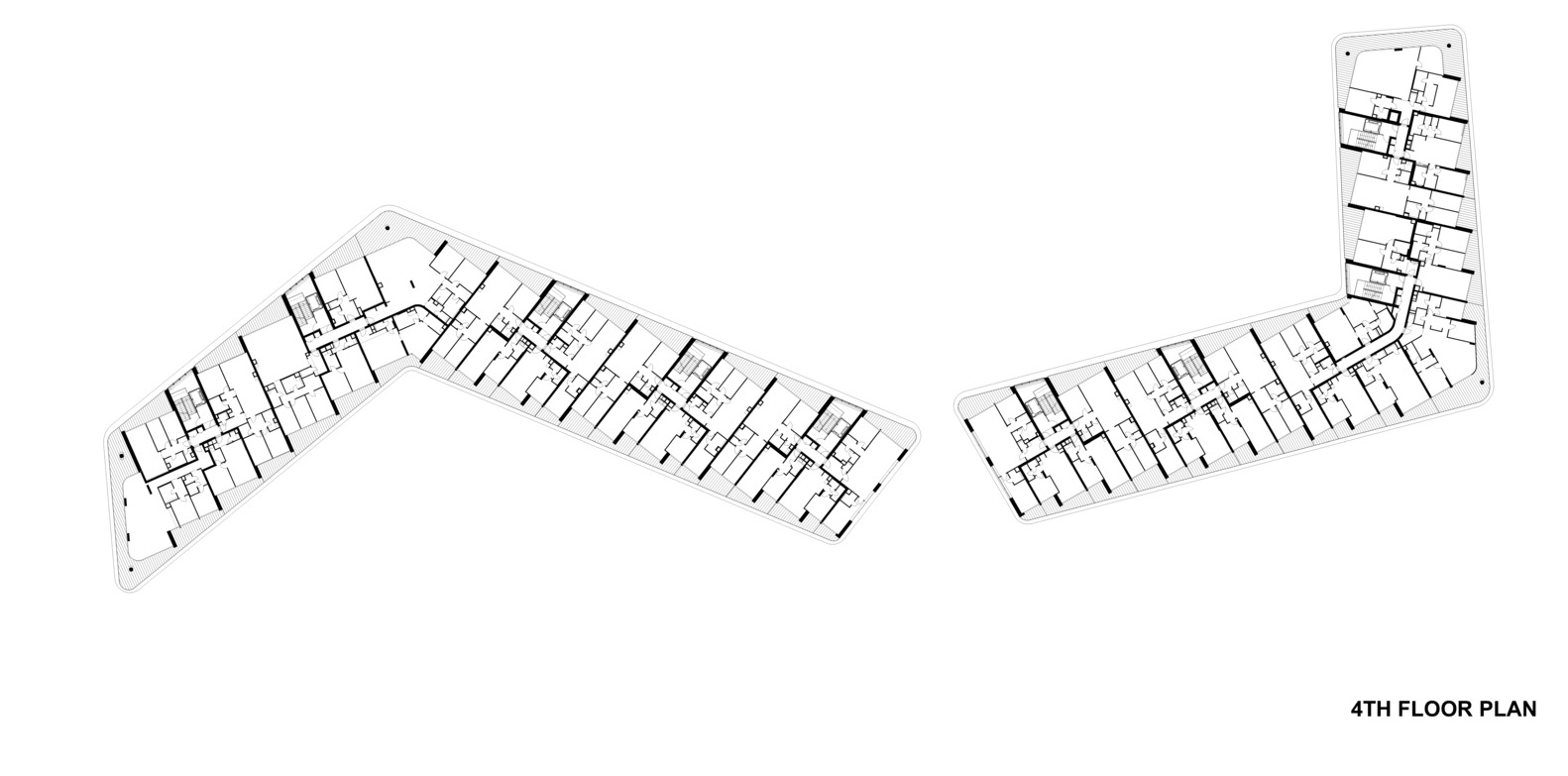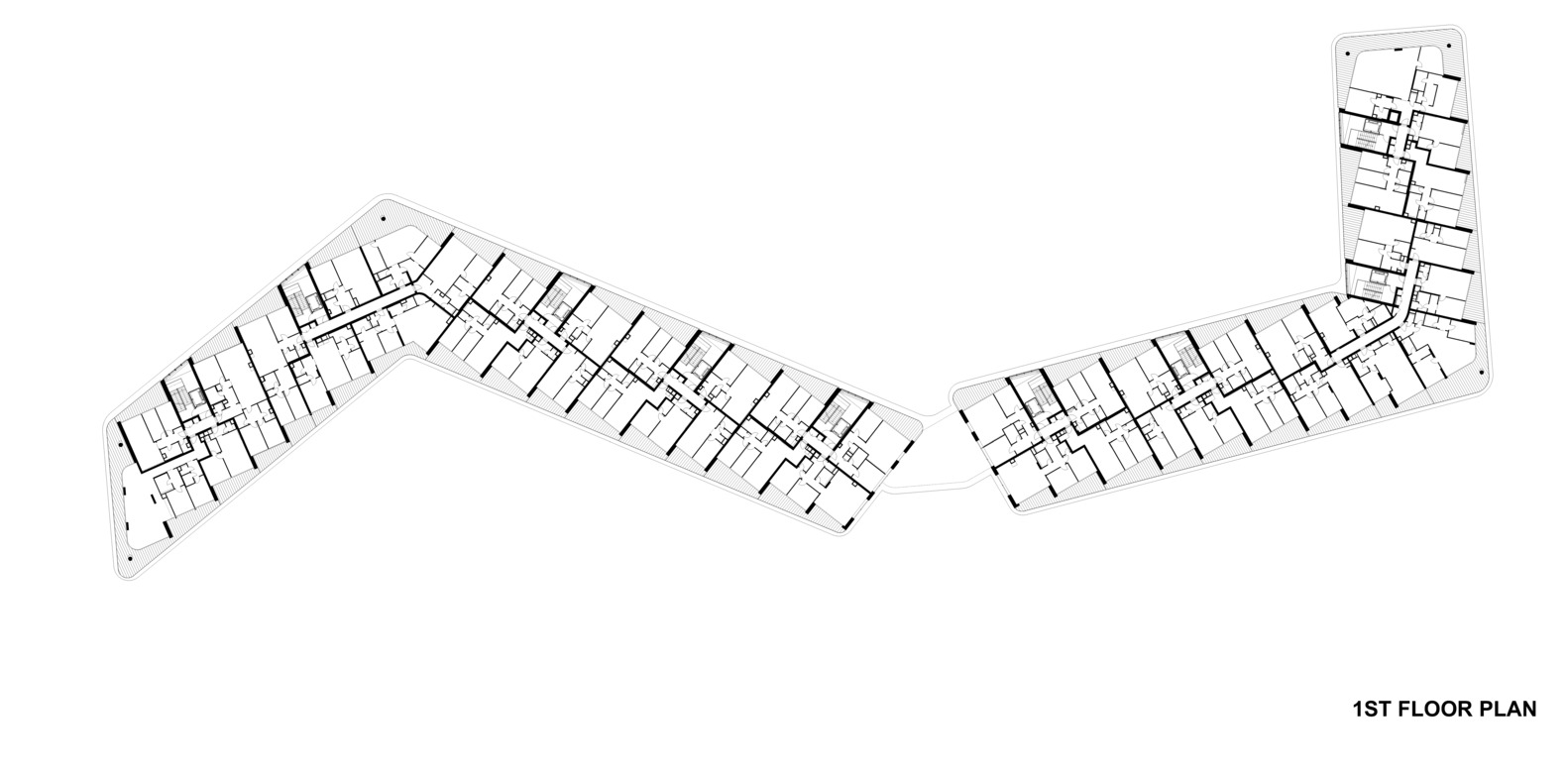 Concept. The architectural concept was first approached from an urban point of view, mapping scale and mass and urban connections. The aim was to design not just a condominium with an attractive façade, but a building that could be viewed from multiple angles and distances, responding to both the natural and built urban environment with equal detail. As a solution, a building volume consisting of two connected superstructure parts was created, which on the one hand follows and exploits the strange geometric features of the site and on the other hand reacts dynamically to the adjacent mass of the National Swimming Centre.