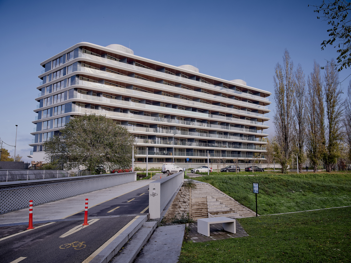 Designed by T2a Architects and completed recently on the site of a former river gravel pit on the banks of the Danube in Budapest, the Danubio residential building responds to the unique urban and natural environment, partially overriding the rules of Budapest real estate developers, and realizes a concept that treats sustainability not only as a slogan but also revives many pre-existing but now forgotten architectural solutions and recreates them in a modern, timeless form.