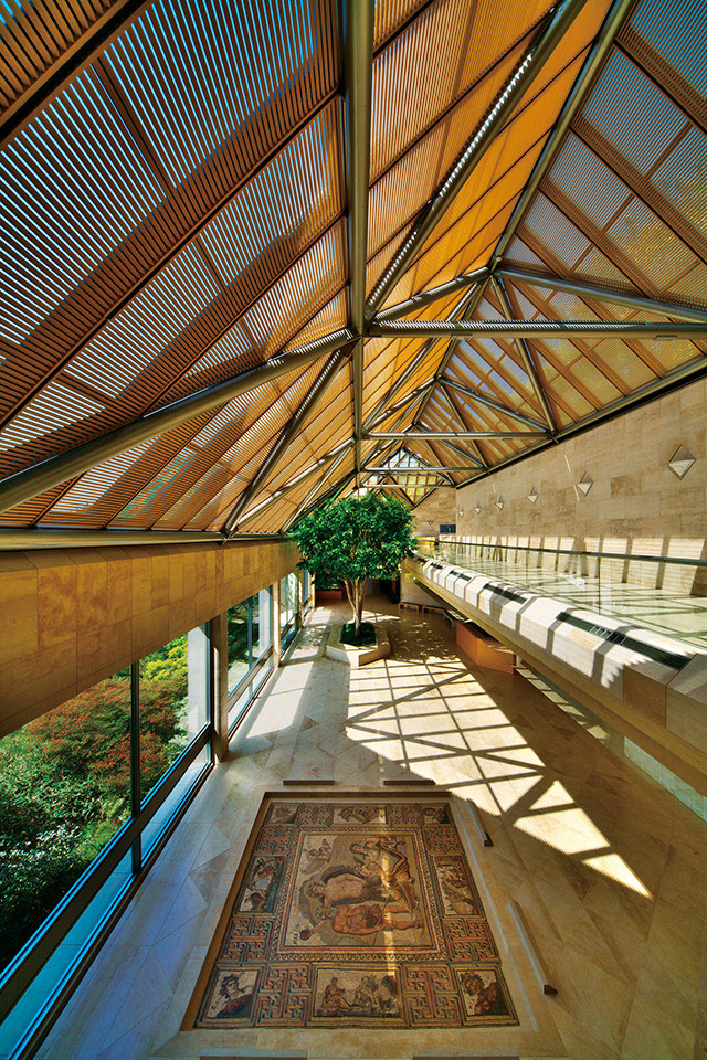 The interior of the Miho Museum adheres to the principle of less is more. The exhibition spaces are designed to reduce visual noise, emphasizing a minimalist aesthetic that brings undistracted focus to the artworks. Skylights on the roof allow natural light to pour into the galleries, an interplay of architecture and sunlight that underscores the artworks’ beauty.