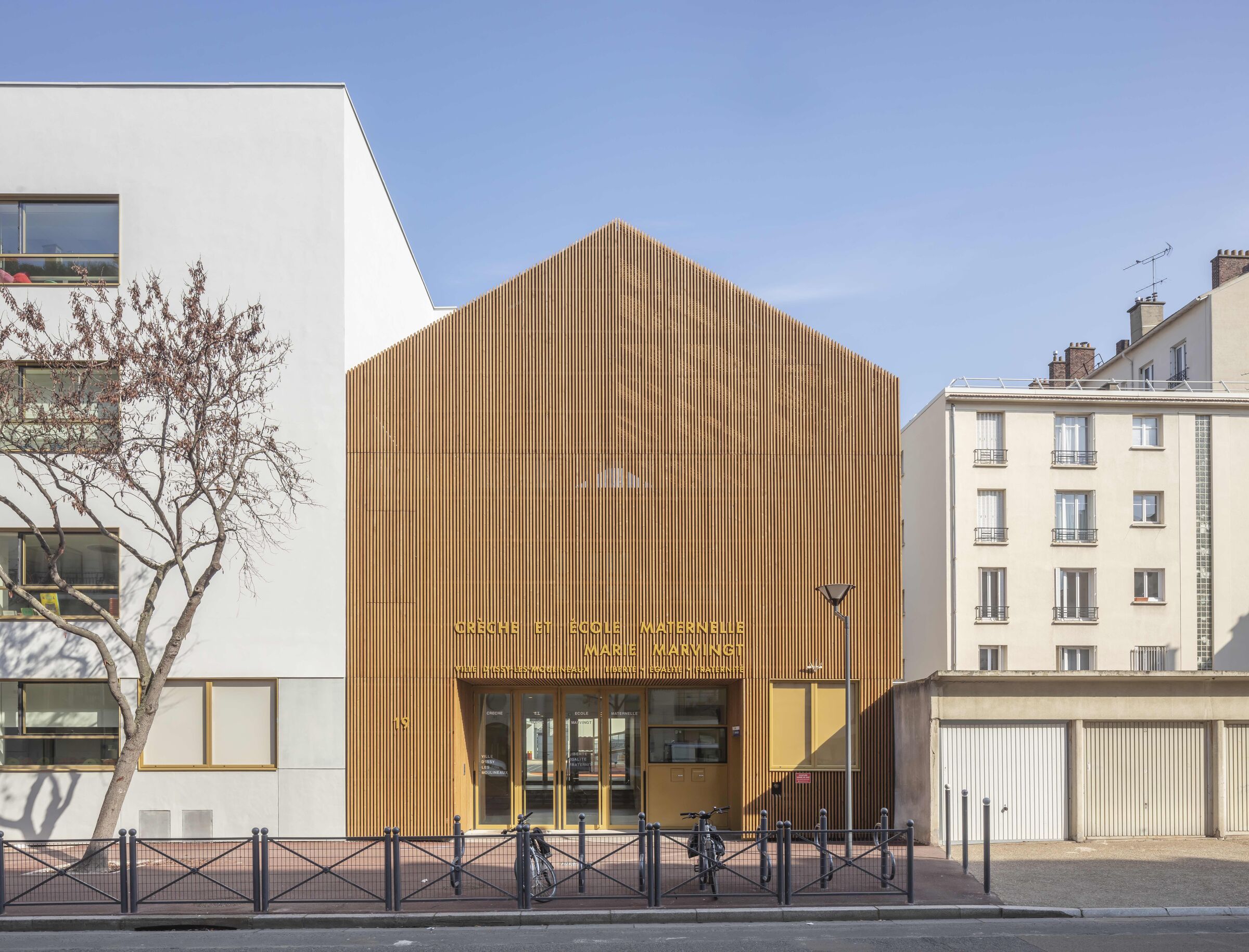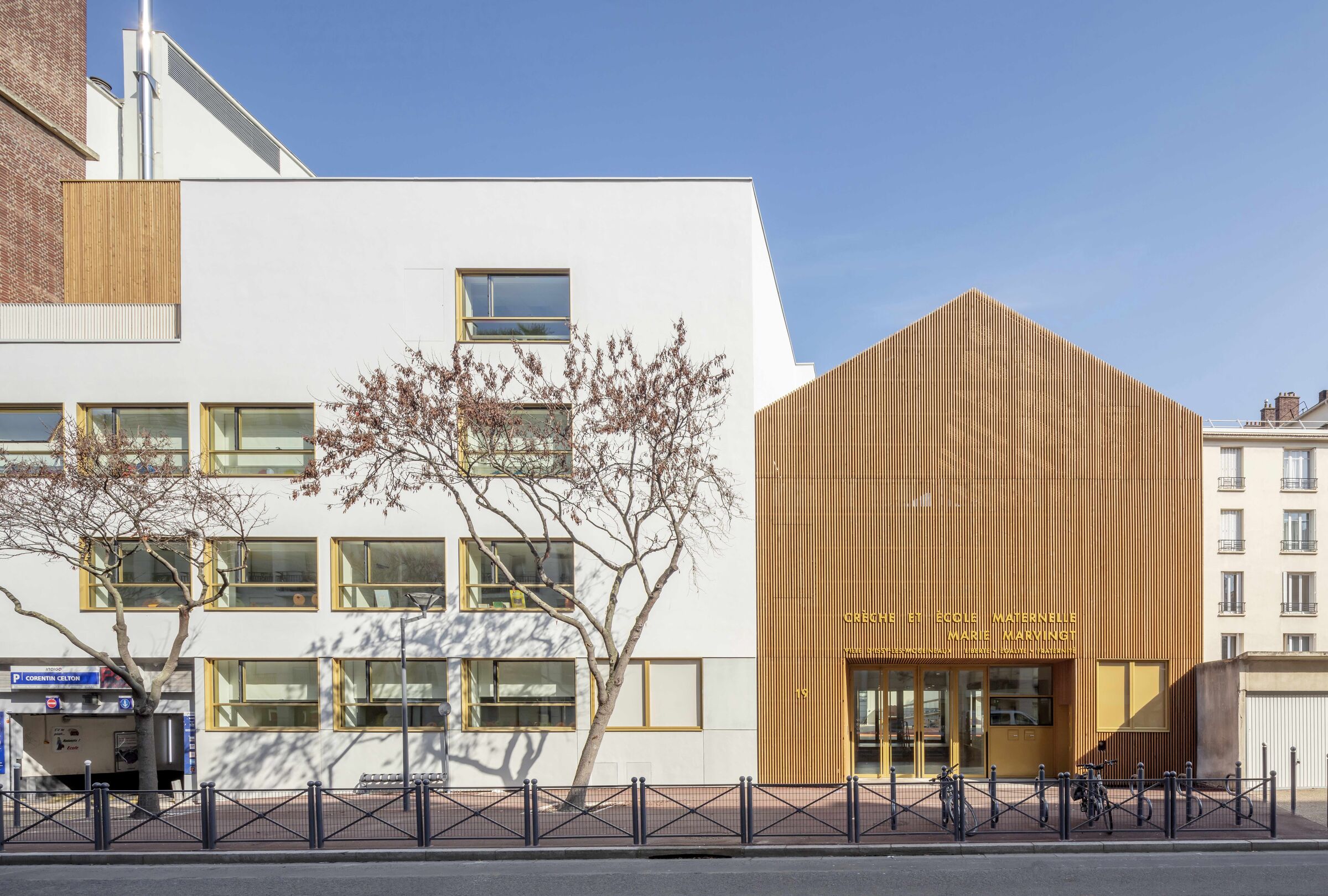 Paris based Antonio Virga Architecte has completed the renovation and extension of the Marie Marvingt Nursery School and Crèche in Issy-les-Moulineaux (a commune in the south-western suburban area of Paris). The studio reconfigured and transformed an already existing and tired building, creating a contemporary design with a strong, comprehensive, and enduring identity. The early learning centre comprises a nursery school on its ground and first floor levels and a crèche on its second and third floor levels.