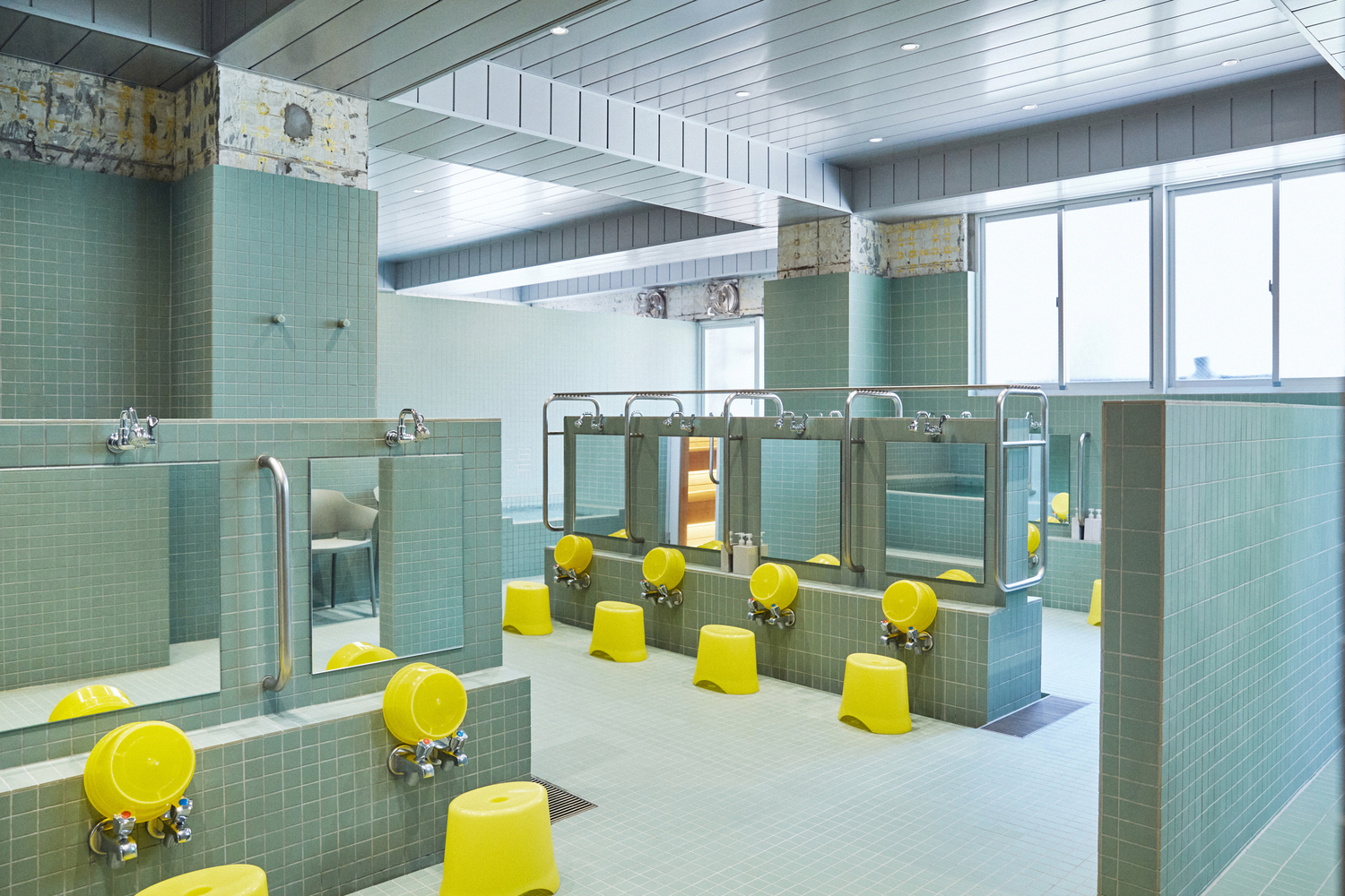 This project is the second public bathhouse Schemata Architects has designed. Originally, sento (public bathhouses) quickly sprang up in the Kanto region when there were no baths in homes, especially after World War II, to improve public sanitation. At that time, Mt. Fuji was painted on the walls of many sento in the Kanto region as a symbol of hope. And the daily routine of going to the bathhouse connected people, and the bathhouse functioned as a place for the local community.