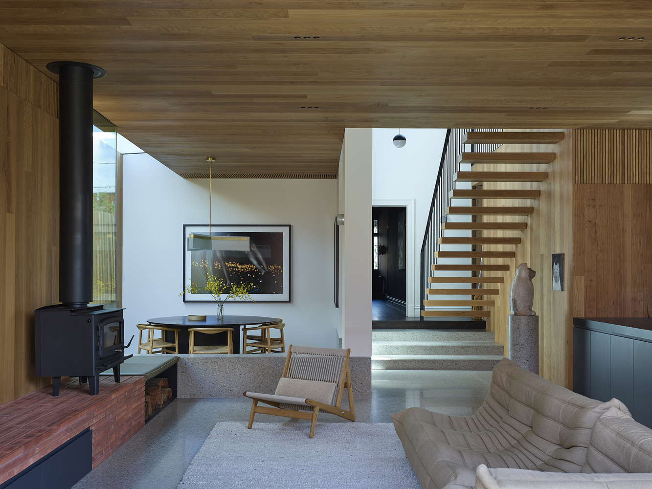 As avid entertainers, the brief sort to balance a high degree of privacy and refuge while providing the ability to completely open up, warmly welcoming family, friends, and locals dropping by. The additional built forms follow a similar volume as the existing houses’ prominent pitched roof form, to preserve and respect the heritage language of the subject property and its intact neighbors.