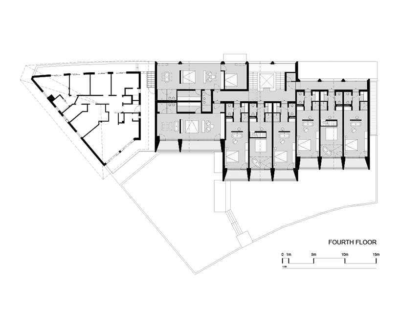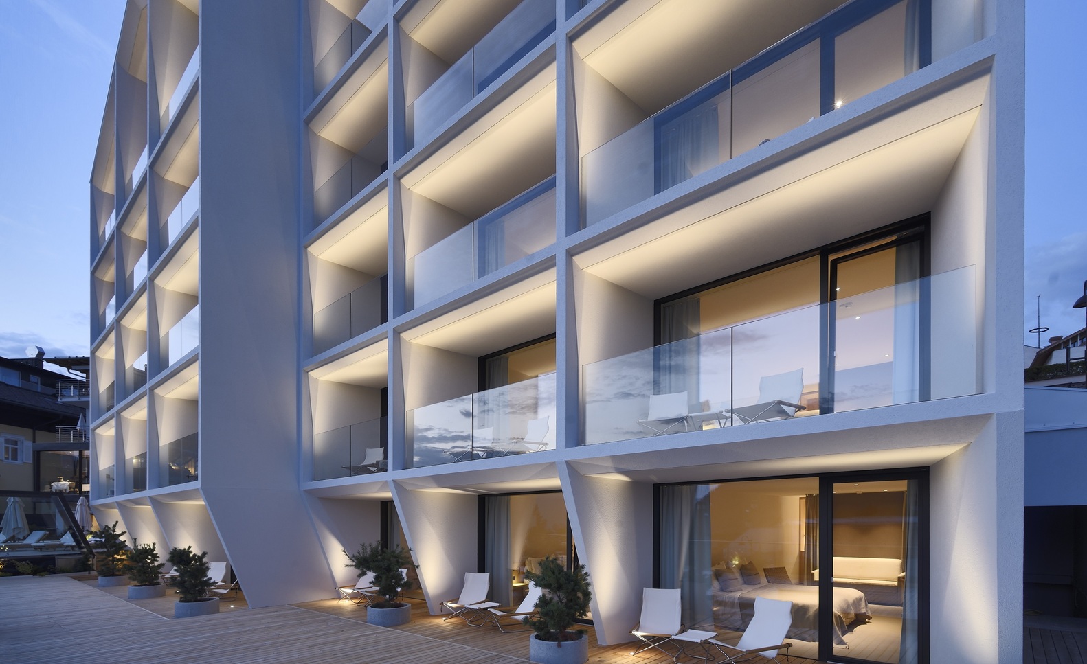 A simple and timeless architectural design is the main protagonist of the charming boutique hotel. Alpine style with reduced aesthetics creates an authentic sense of well being. An open and transparent house attracts guests and invites visitors to come in and feel the connection to the picturesque village and its surrounding mountains. The Project consists of three monolithic volumes, following the original structure of the house before reconstruction. While respecting local context and its surroundings, the strong architectural identity of the Hotel follows a contemporary reinterpretation of the alpine style and plays with vernacular elements such as the typical sloped roof.
