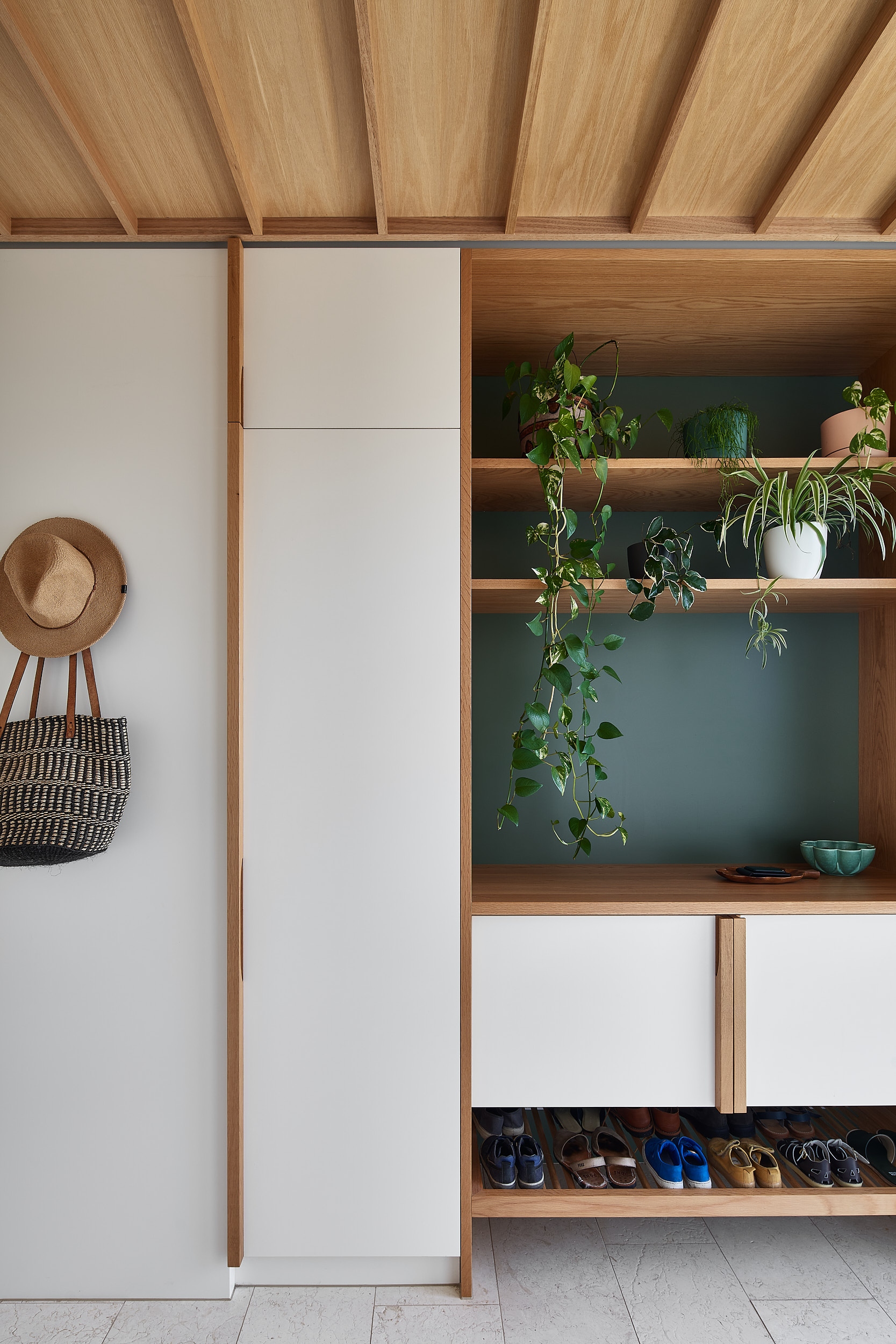 In its engagement with the site, the front face of the structure is deliberately open to the front garden, which then acts as a transitional threshold between the home and the street. As an expression of the gabled form, the rear living area uses the entire cavity, allowing the eye to be drawn upward and natural light to be brought into the space in abundance. A natural palette ensures a sense of warmth and texture is felt throughout, with tonal notes taken from the landscape to reinforce its importance. Key sustainable principles then underpin the home, ensuring orientation, necessary utilities and passive heating and cooling seamlessly strengthen the readiness for the structure’s next chapter.