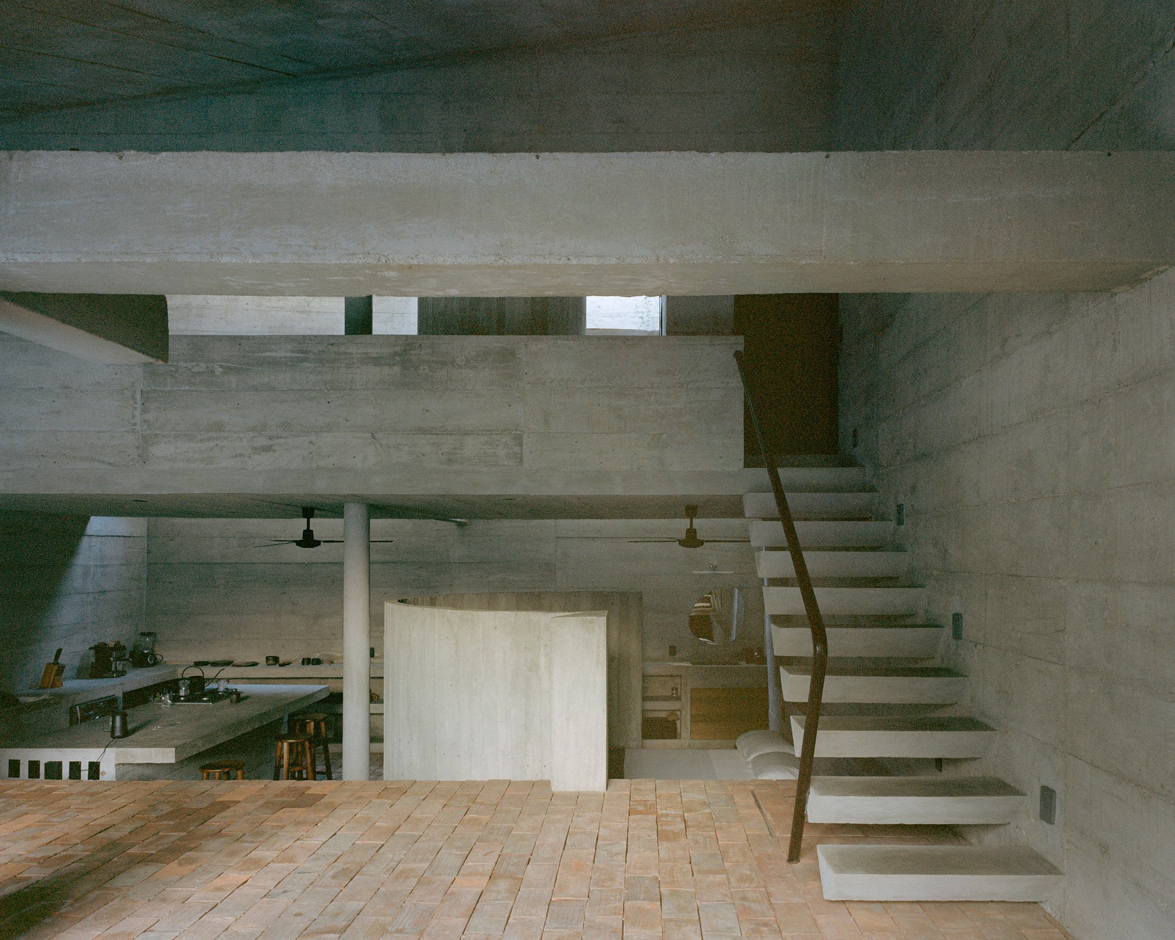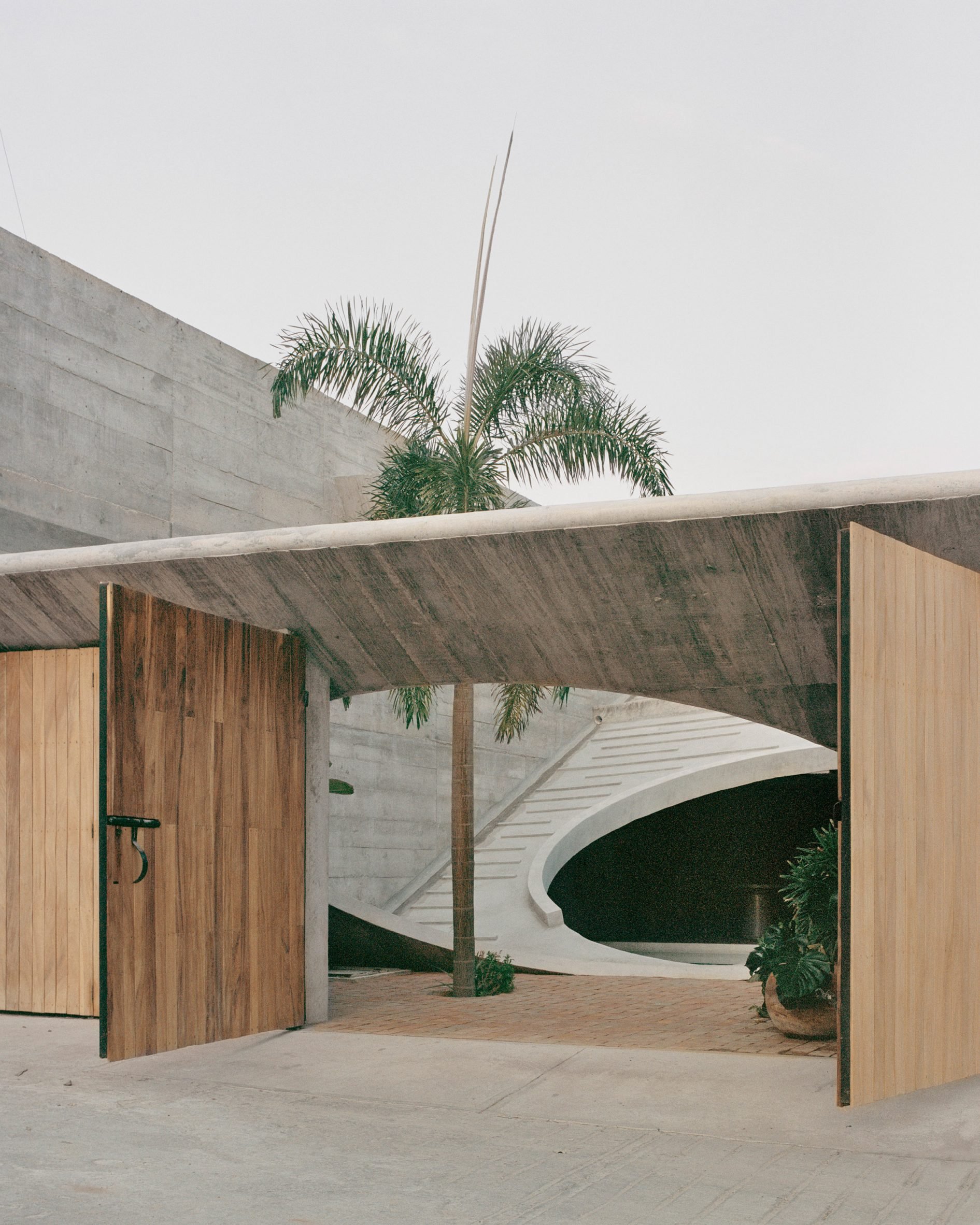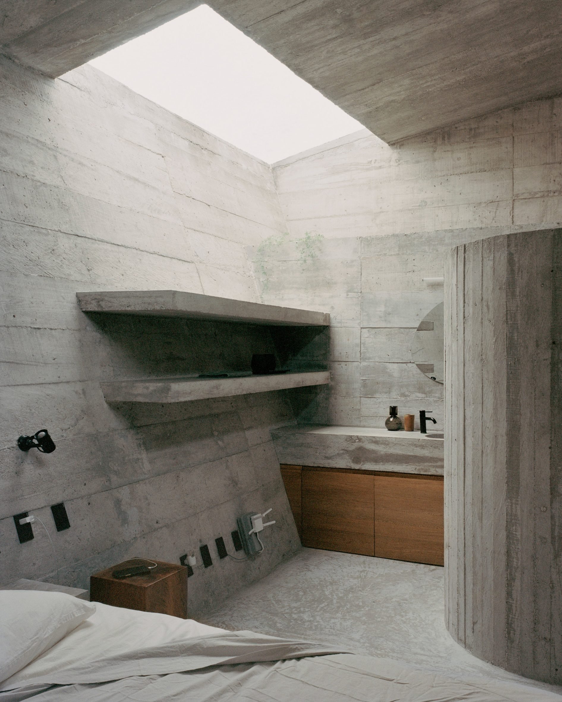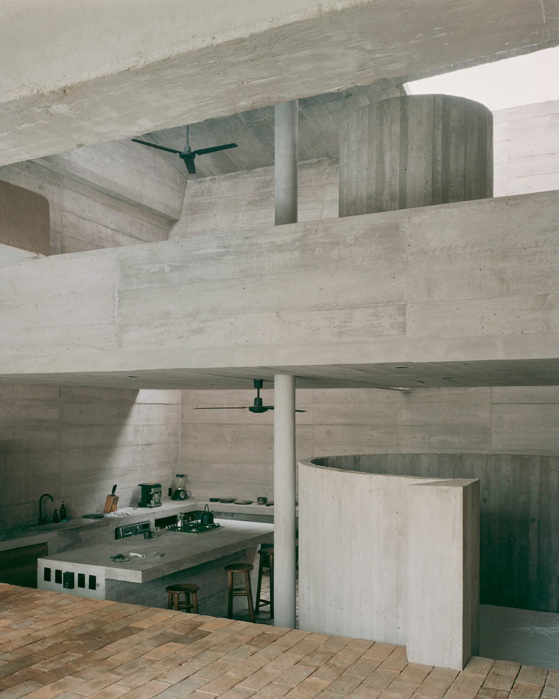 Godefroy placed a series of circular openings in a cast-concrete structure to create cave like interiors that remain open to the tropical climate of the Pacific coast site.
