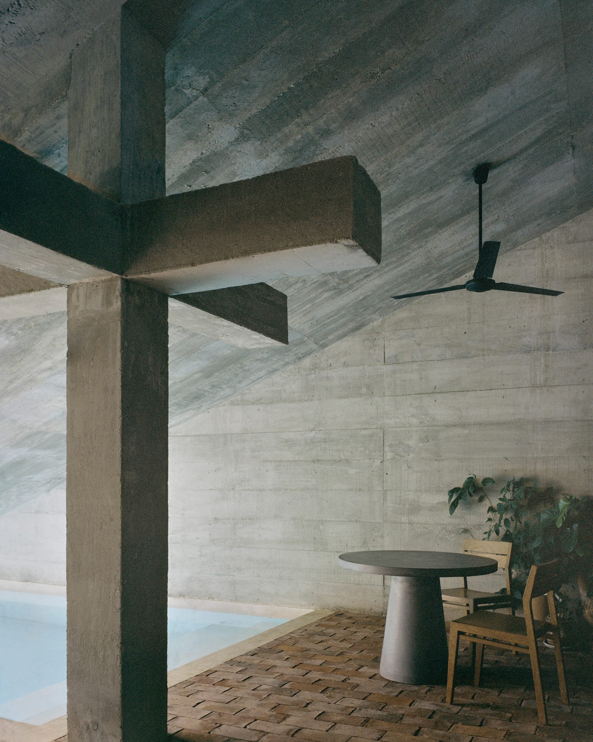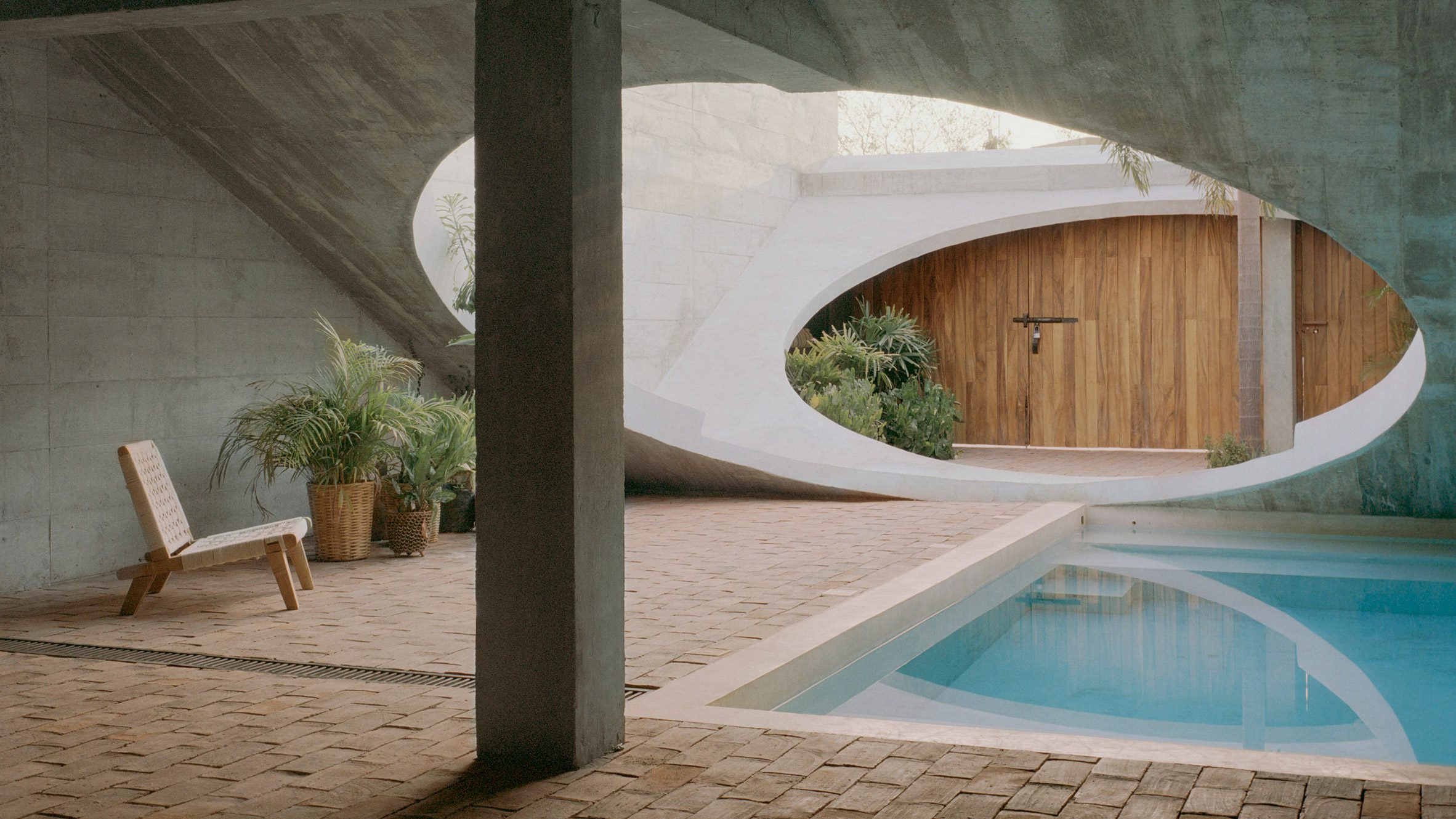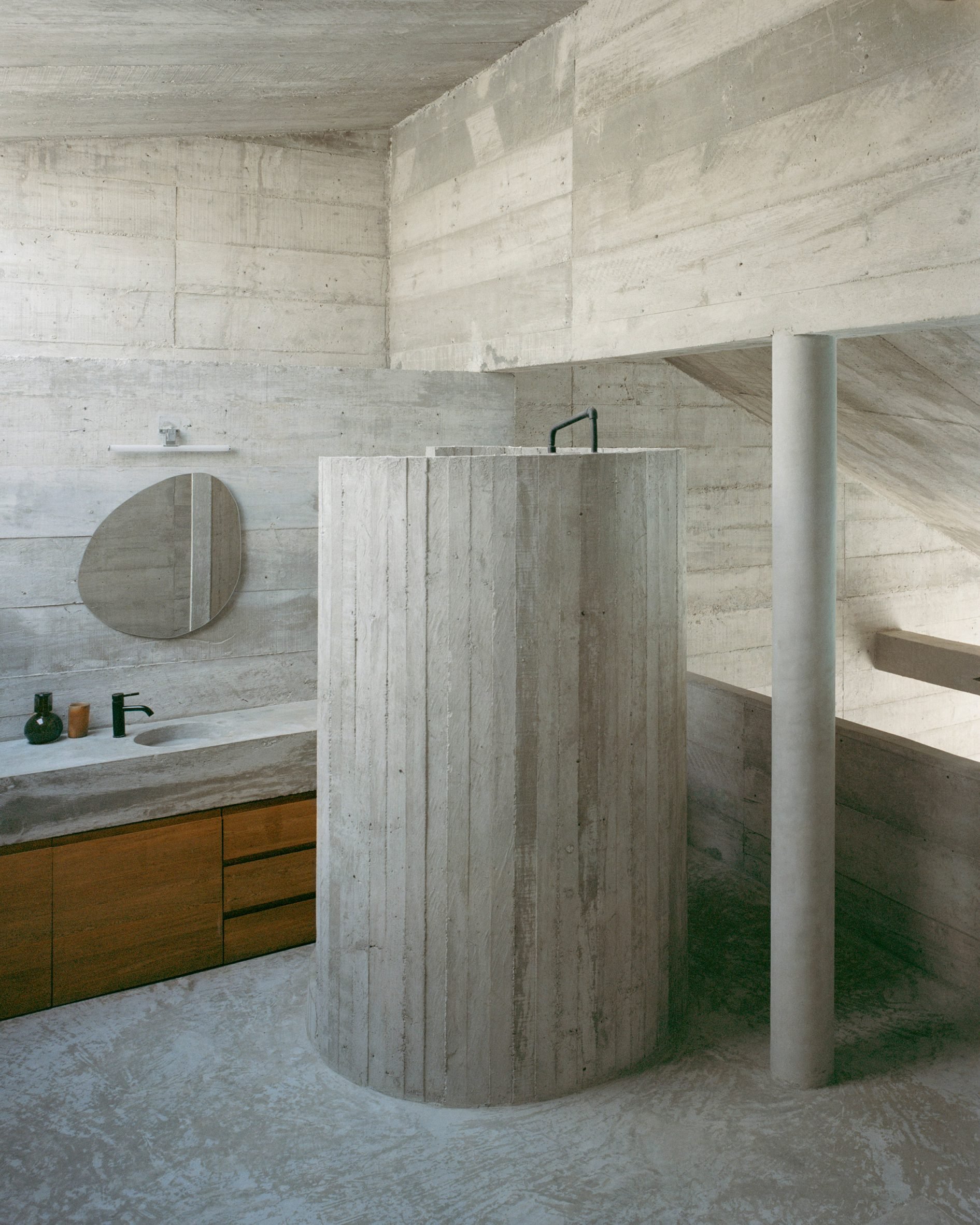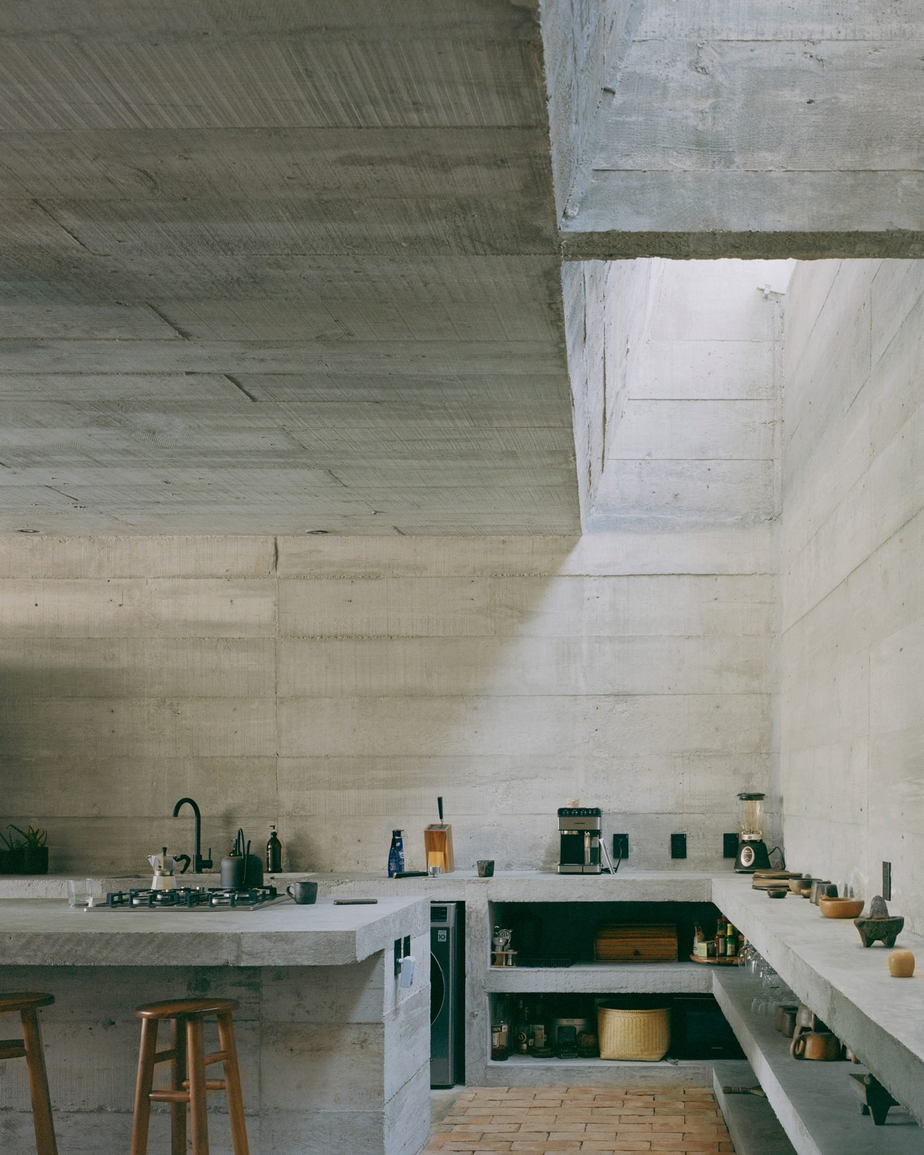 Godefroy placed a series of circular openings in a cast-concrete structure to create cave like interiors that remain open to the tropical climate of the Pacific coast site.