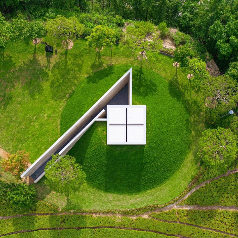 The museum begins with a welcoming center and a grass parking lot along the trail. It further reveals the Flower Garden, Water Garden, Main Building, Meditation Hall, Stone Garden, and James Turrell Hall. Within the main building lies the architect’s philosophy of connecting the earth, sky, and people by integrating four wing structures, forming square, triangular, and circular spaces. Space of Light plays with stillness and motion, tension and openness, crafting an engaging experience for visitors.