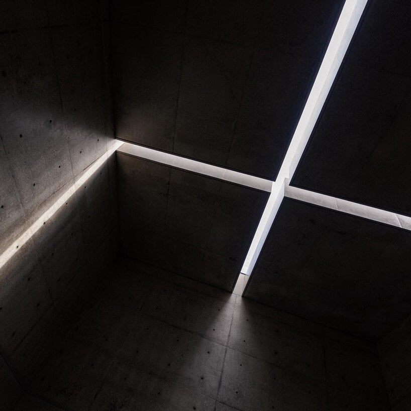 The pavilion was built to celebrate the Museum SAN‘s tenth anniversary. Two imposing diagonal walls shape a narrow pathway, guiding visitors toward the entrance of the building. This design creates an inviting and meditative ambiance, encouraging exploration and self-reflection. Stepping onto the driveway, visitors find themselves in a triangular antechamber, devoid of a ceiling, where sunlight bathes the space, gently intertwining with the square building. As users pass through this area, the interior of the building, clad with exposed concrete, is revealed, and thin streams of sunlight cascade through the cross-shaped ceiling. The radiant light envelops the entire space, creating a sacred atmosphere.