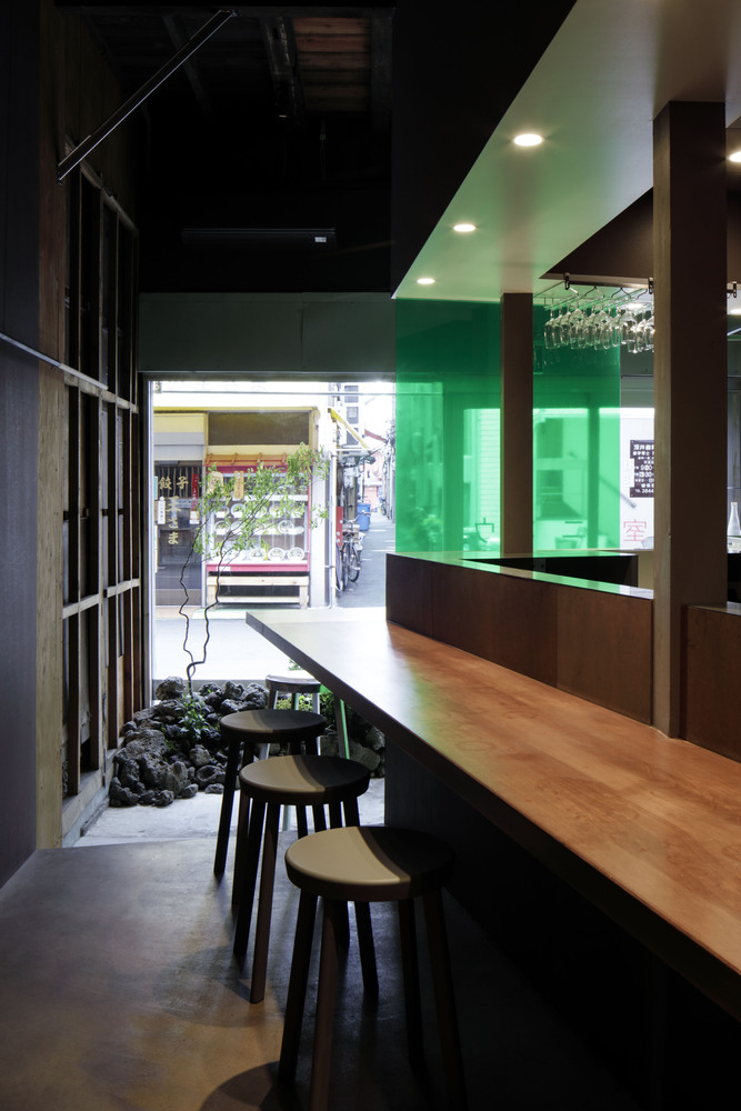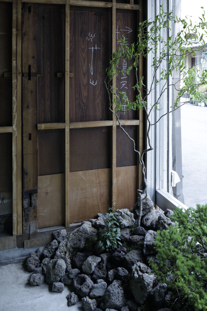 The site is located in Tokyo's old town Asakusa. The street approaching the 1400-year-old Asakusa temple is a popular tourist spot. It is a two-story wooden building situated at the end of a narrow street, just off the main street. We transformed a 70-year-old stamp shop into a restaurant.