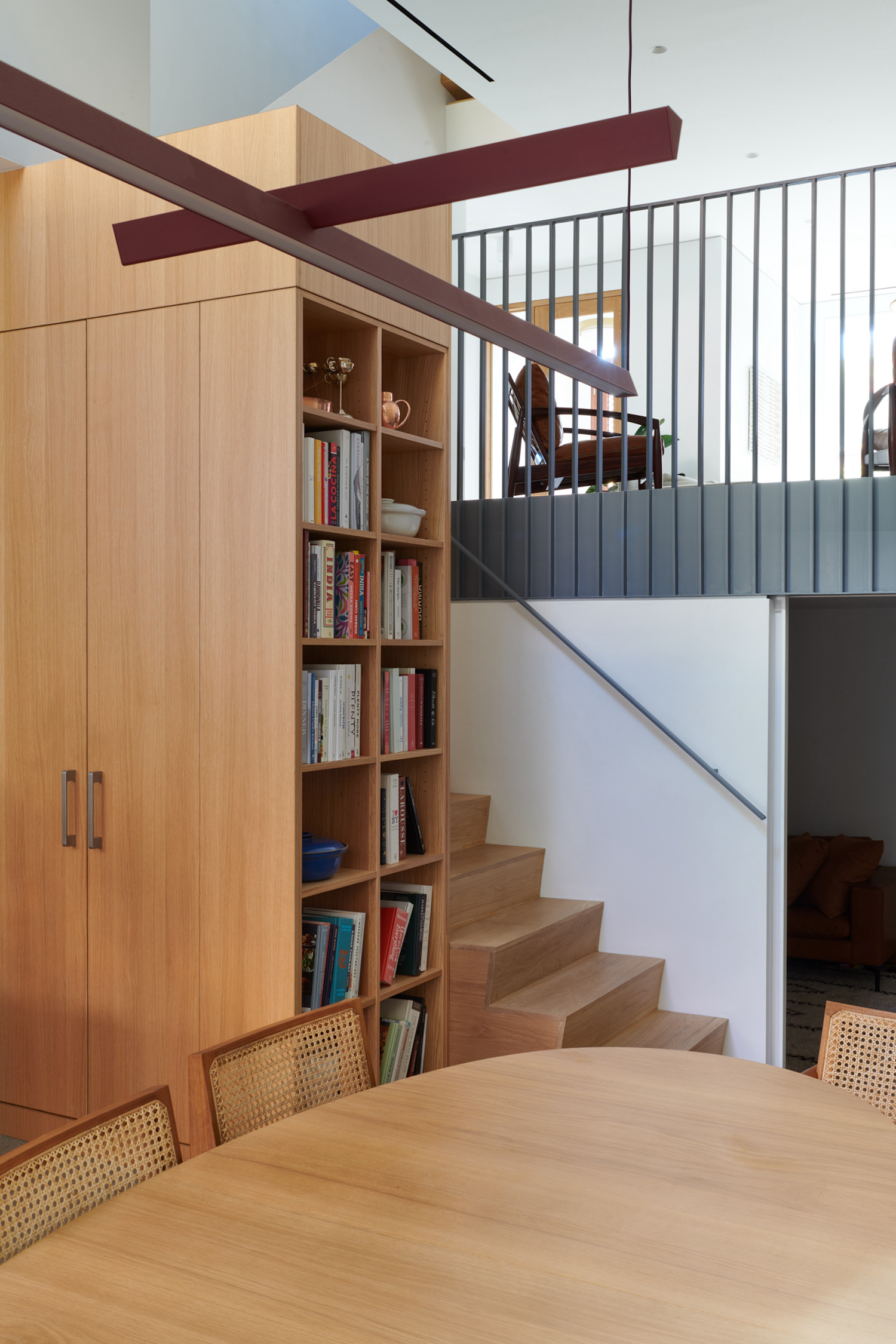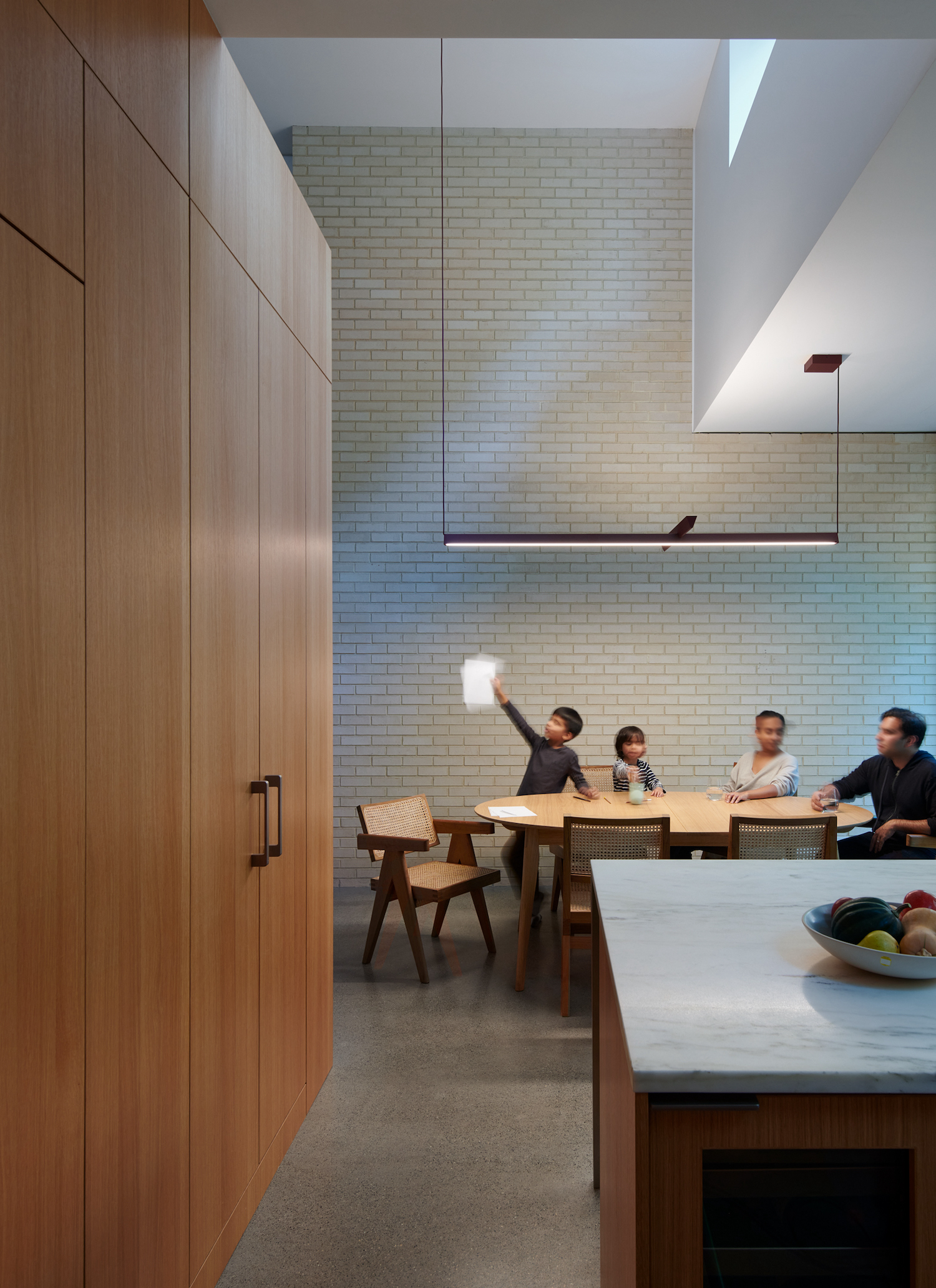 On the other, the interior was reimagined as a space not confined to its four walls but rather extending to the outdoors. The Z House stands as a transformative model for urban domestic living. Traditionally, attached row houses offer compact, dark, rectangular spaces, with windows constrained to the shorter sides of the building. The typical design prioritizes maximizing square footage over fostering visual connections between different levels. Stairways are commonly stacked, thus limiting any potential for vertical visual interaction. The Z House departs from this norm, opting instead for a robust vertical experience that interconnects inhabitants in novel ways. It’s a design that emphasizes openness, not only reflecting the family’s history and their connection to a more temperate climate but also embracing a modernist approach that challenges the expected.