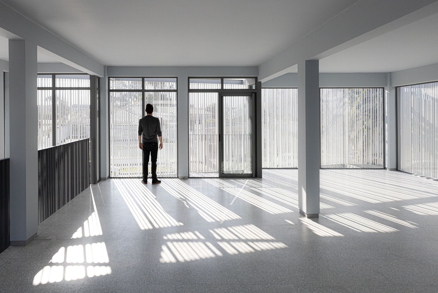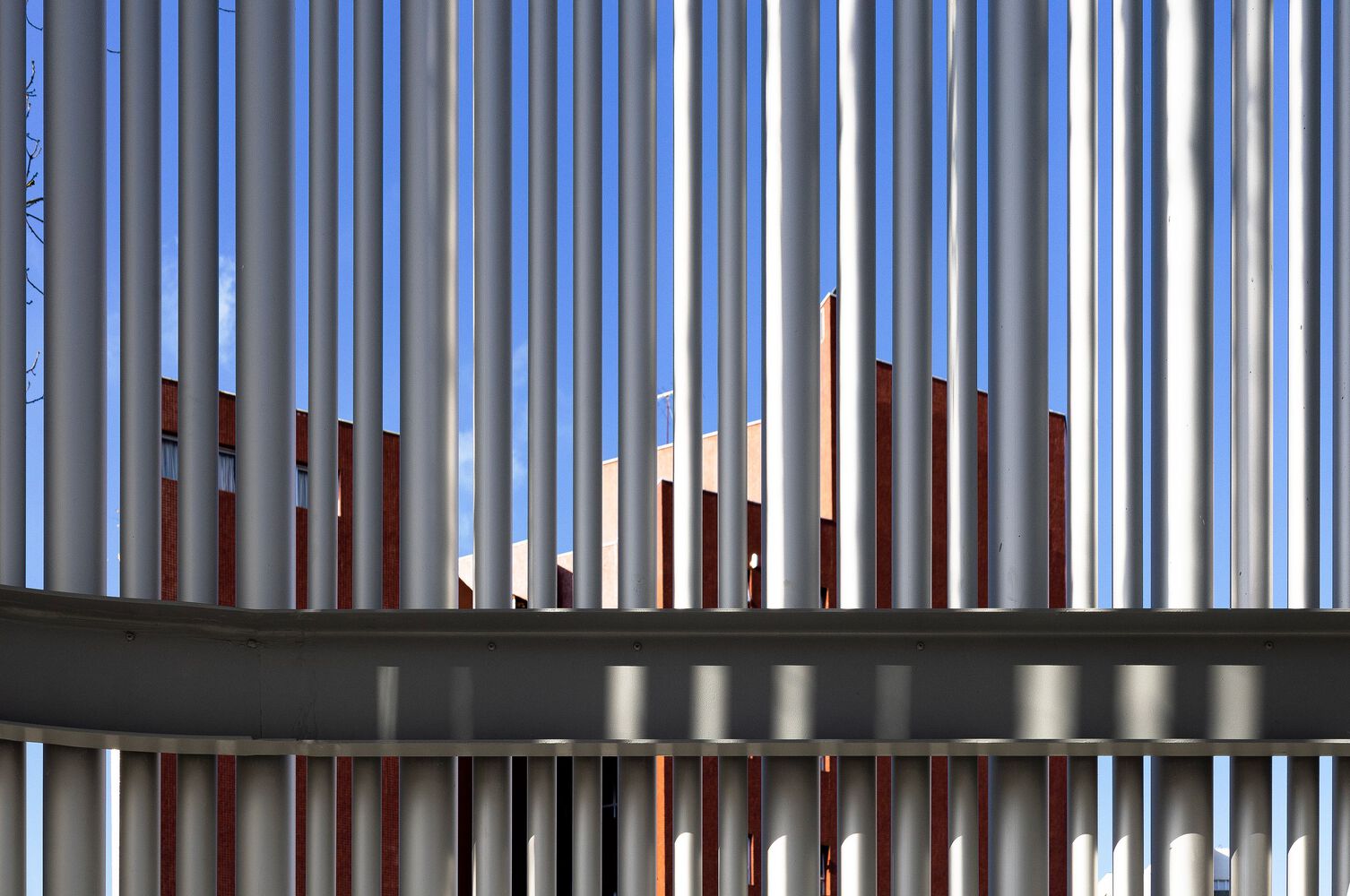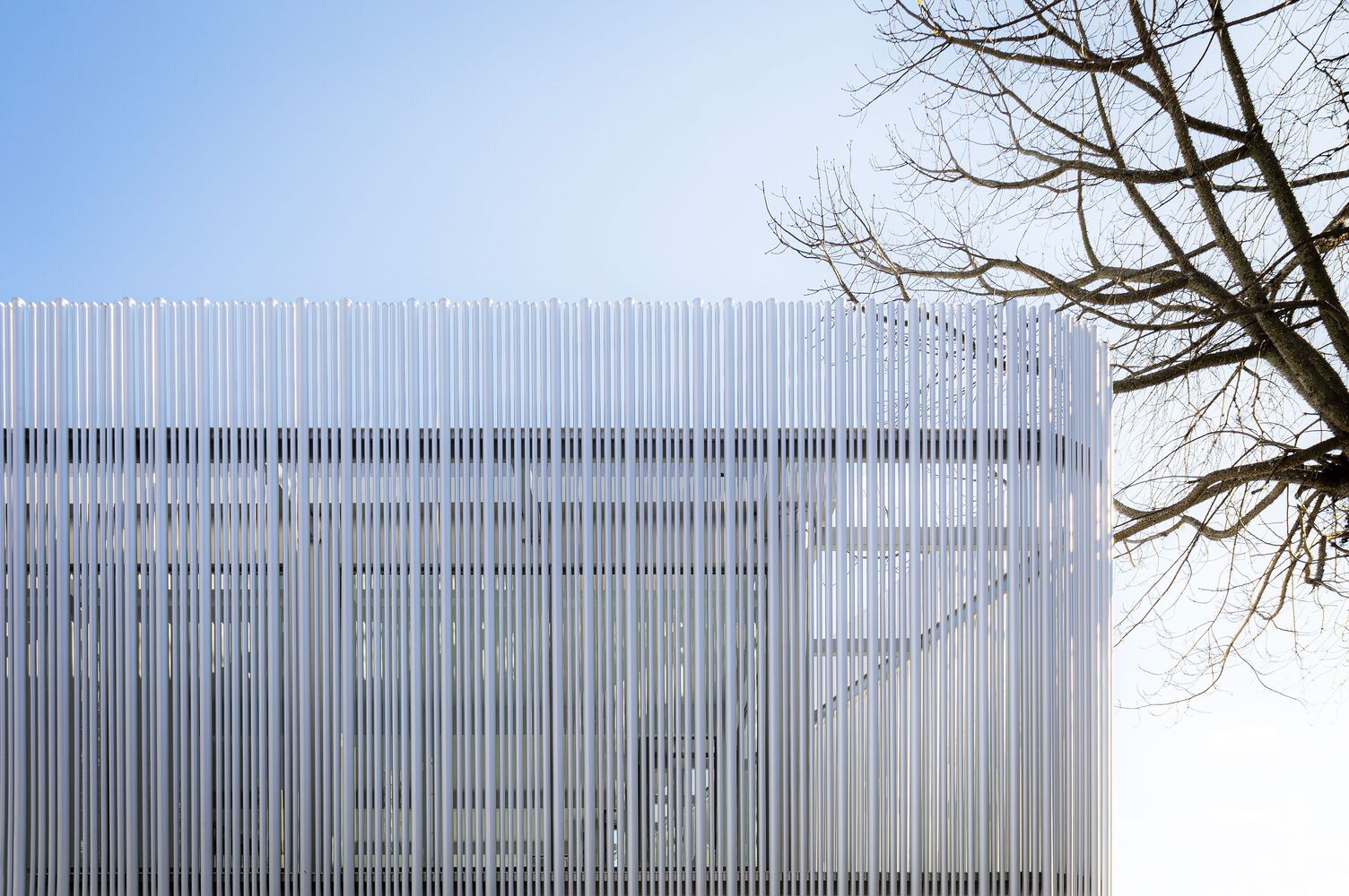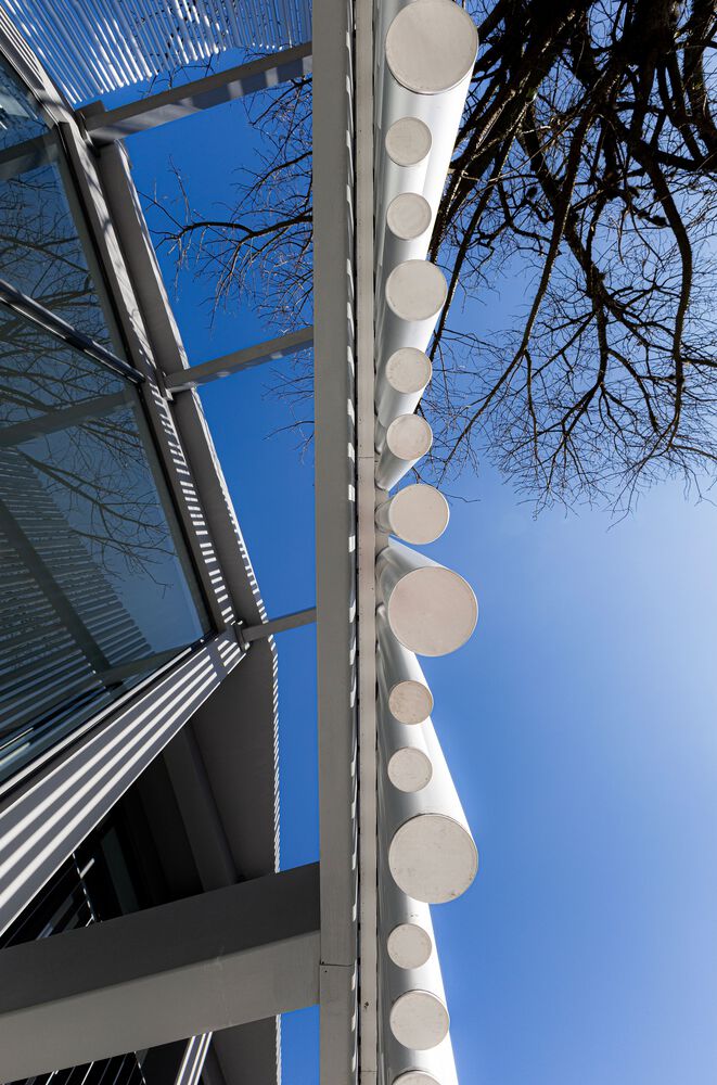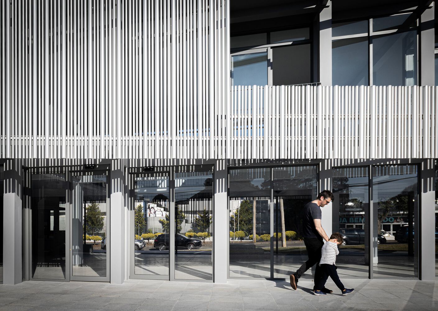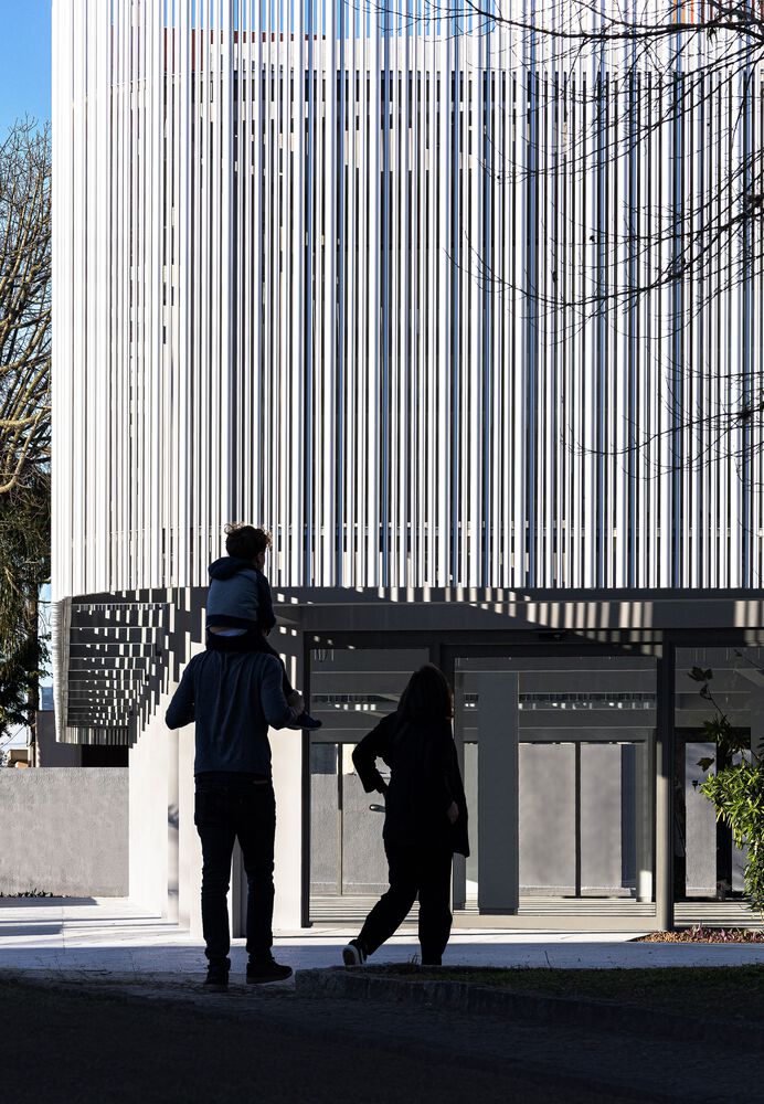 On the facades there is a double envelope. An external envelope with a unique character, tailor made for the development, allows it to accommodate technological changes and correctly withstand the passage of time. On the ground floor, the glass showcases establish the desired scale of visibility for projects of this nature, with predominantly commercial use. On the upper floor, the building envelope is constructed with a brise-soleil, in anodized aluminum tubes. This is the main visual identity element of the new store. The varied dimensions of the tubes create thicknesses, reacting to light, filtering and shading the interior work and living spaces.