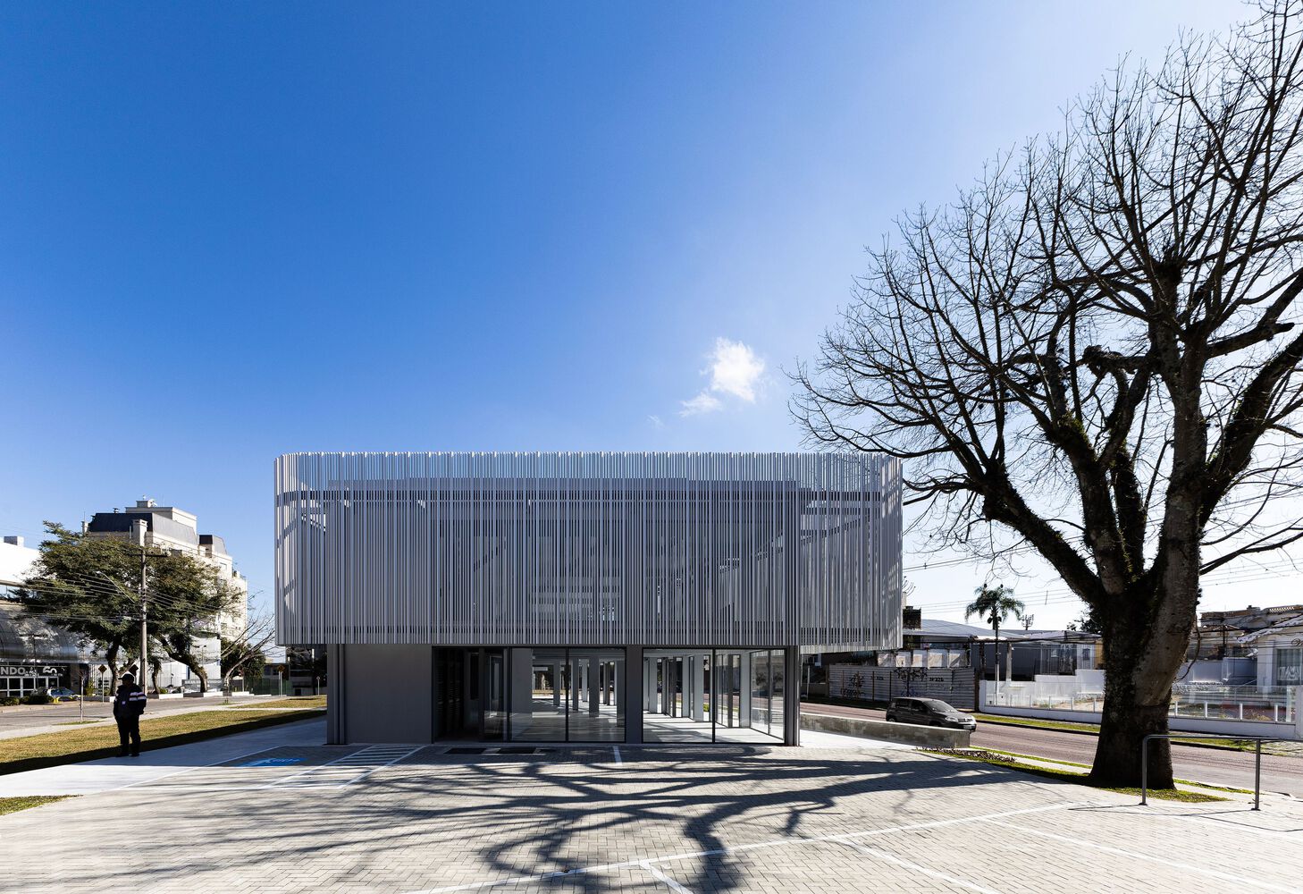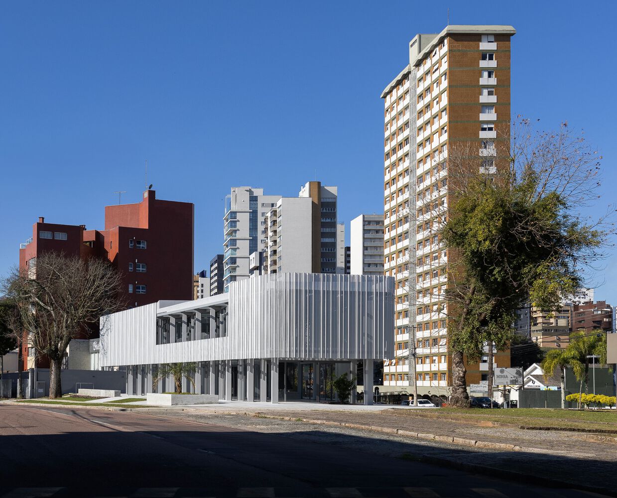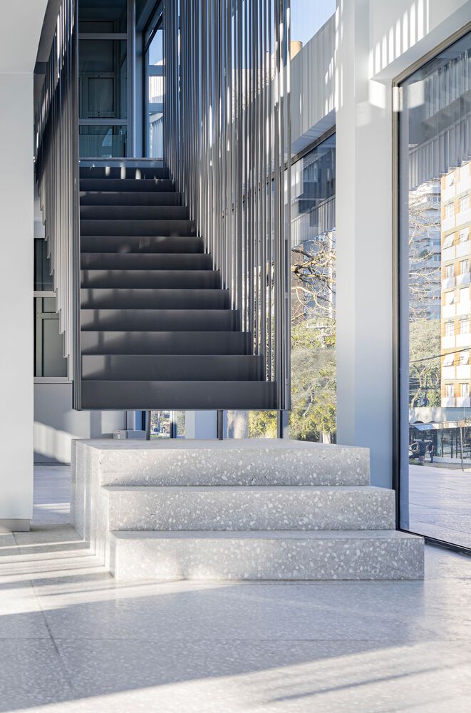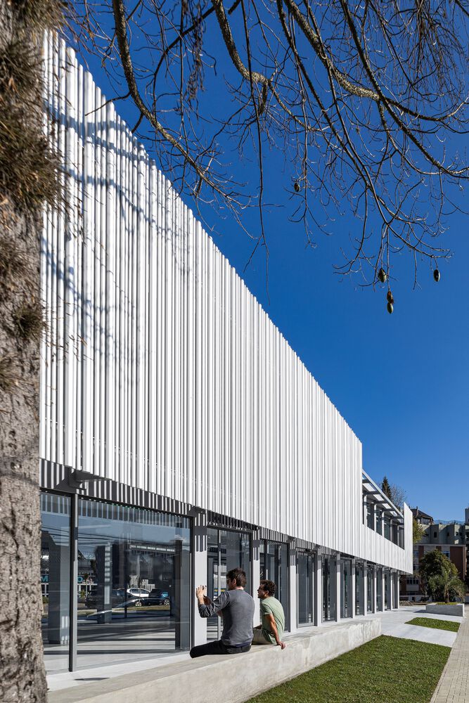 A commercial space in the Batel neighborhood, in Curitiba PR. Result of a retrofit in which the original structures of the building were maintained, the project was premised on active facades, thus creating a transparency between interior and exterior on the ground floor, in order to allow multiple possible accesses. The site has a peculiar situation on an urban scale. The lot's morphology is similar to an acute triangle and, when considering the requirements of the legislation, such as the setbacks of the building alignment, there was not enough usable area left for the implantation of the building, or for the construction of a good area in the basement of garages, for example. As a result, in the first conversations with the clients, the hypothesis arose to renovate the existing building on the lot, carried out in the 90s. A fundamental aspect of the context is the presence of the small square next to the corner. It suggests visual integration and pedestrian flows, directly connected with the interior of the store.