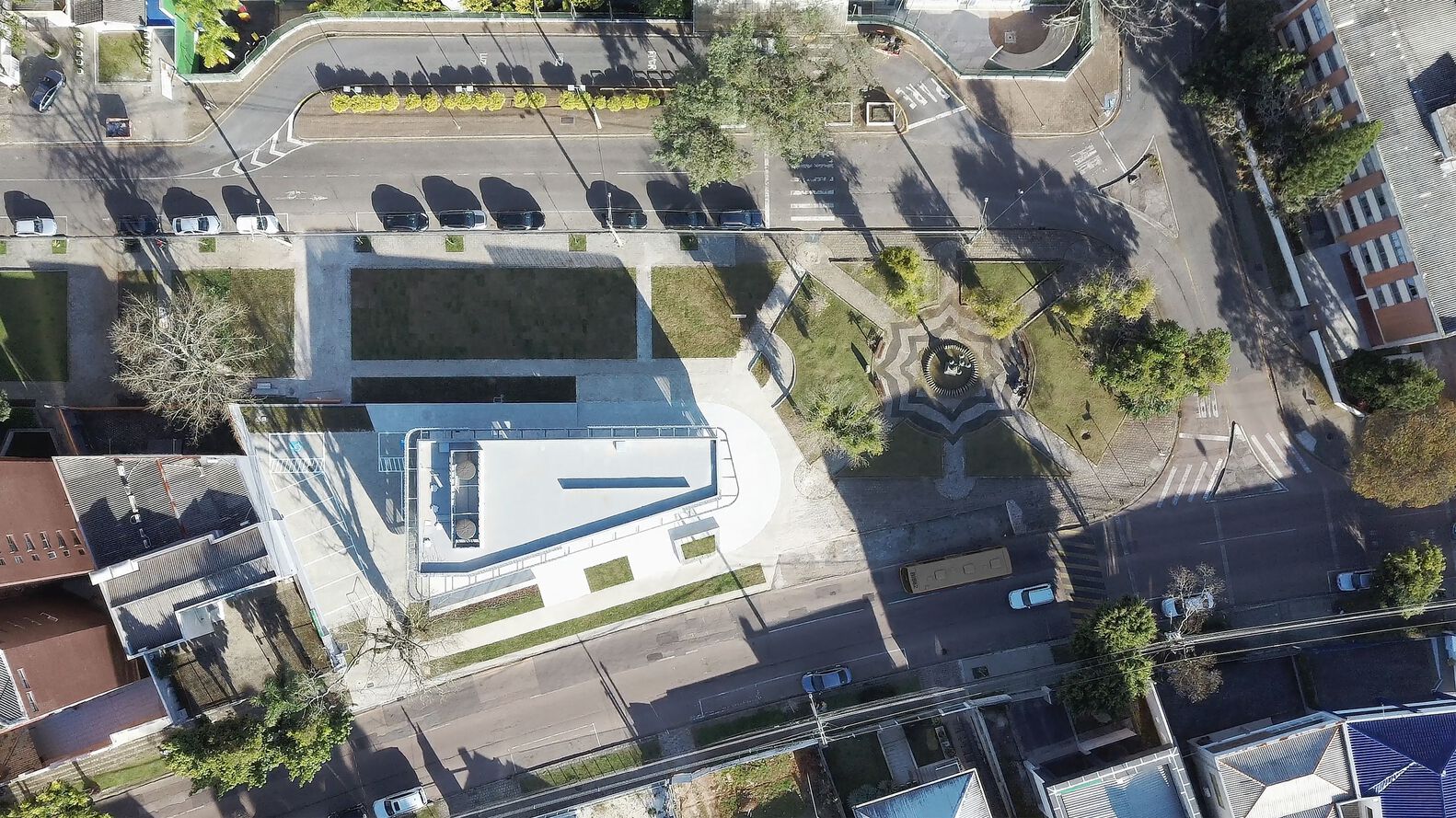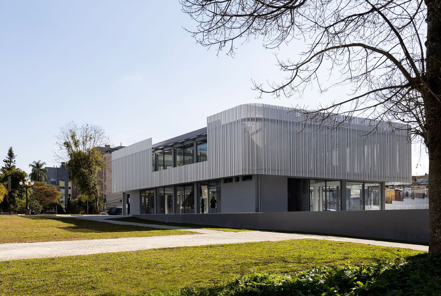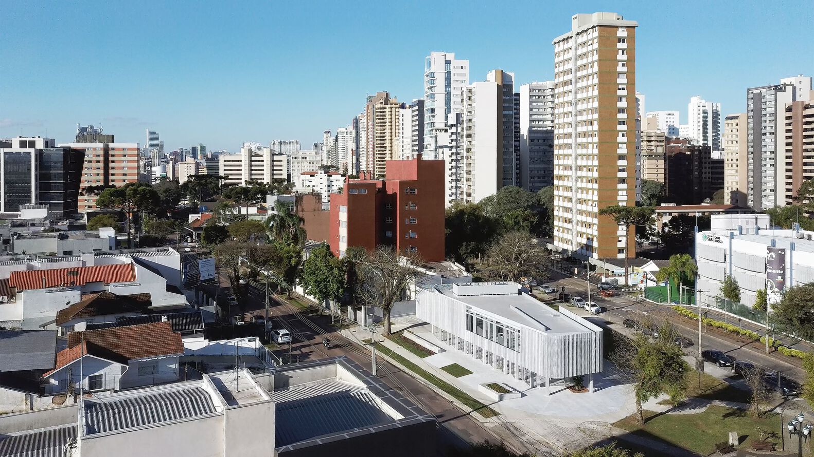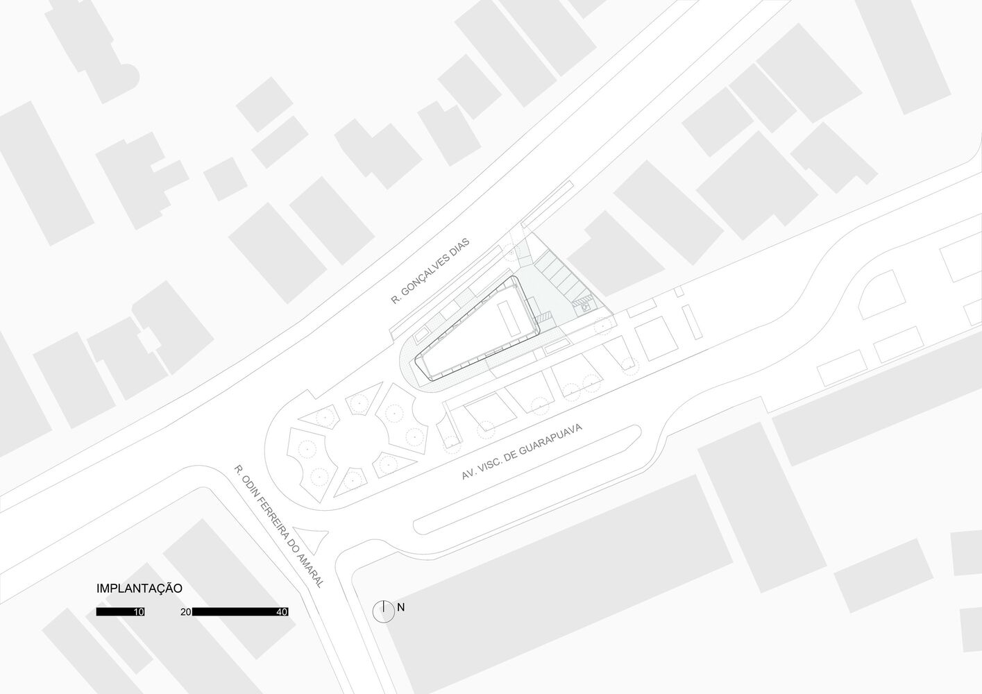 A commercial space in the Batel neighborhood, in Curitiba PR. Result of a retrofit in which the original structures of the building were maintained, the project was premised on active facades, thus creating a transparency between interior and exterior on the ground floor, in order to allow multiple possible accesses. The site has a peculiar situation on an urban scale. The lot's morphology is similar to an acute triangle and, when considering the requirements of the legislation, such as the setbacks of the building alignment, there was not enough usable area left for the implantation of the building, or for the construction of a good area in the basement of garages, for example. As a result, in the first conversations with the clients, the hypothesis arose to renovate the existing building on the lot, carried out in the 90s. A fundamental aspect of the context is the presence of the small square next to the corner. It suggests visual integration and pedestrian flows, directly connected with the interior of the store.