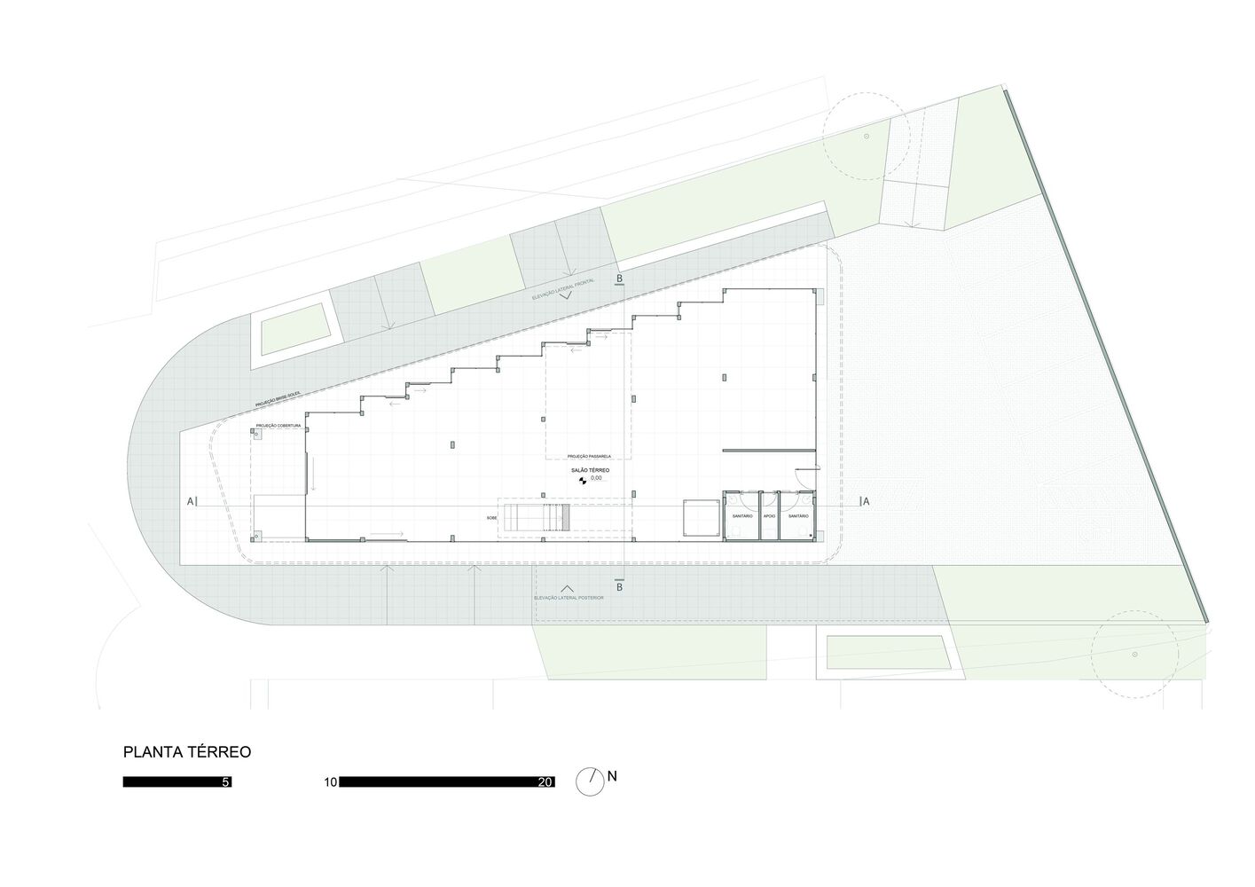 쿠리치바 PR의 바텔 지역에 위치한 상업 공간이다. 이번 프로젝트는 능동적인 파사드를 전제로 1층의 내부와 외부를 투영하게 만든다. 이를 통해 다양한 접근이 가능하도록 제안한다. 현재의 법규를 적용할때 공간적 손해를 보기 때문에 기존건물의 개보수를 통해 새로운 가치를 창출한다.