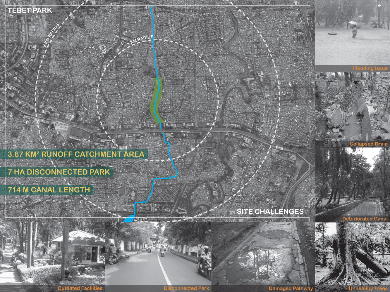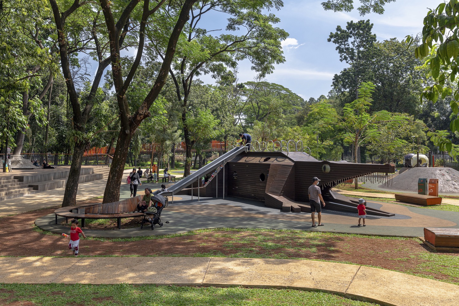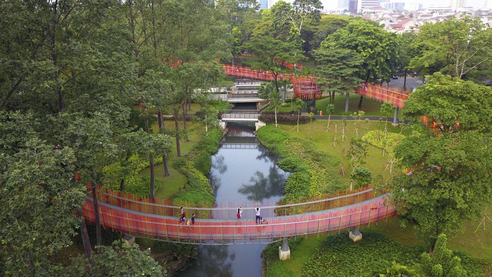 In just 15 months, an aging public park with a degraded environment, disconnect accessibility, flooding issue, and social problems was transformed into a vibrant park embraced by the local community. Tebet Eco Park is a 7.3 hectare public park revitalization project located in Jakarta, Indonesia with a focuses on an active regeneration of the site’s ecology with tree conservation and enhancing the blue-green infrastructure. The ecological landscape design approach reduces the risk of flooding with river re-naturalization. The result of this new urban regeneration cultivates an inclusive environment that facilitates access to a wide offering of recreational activities in a natural setting.