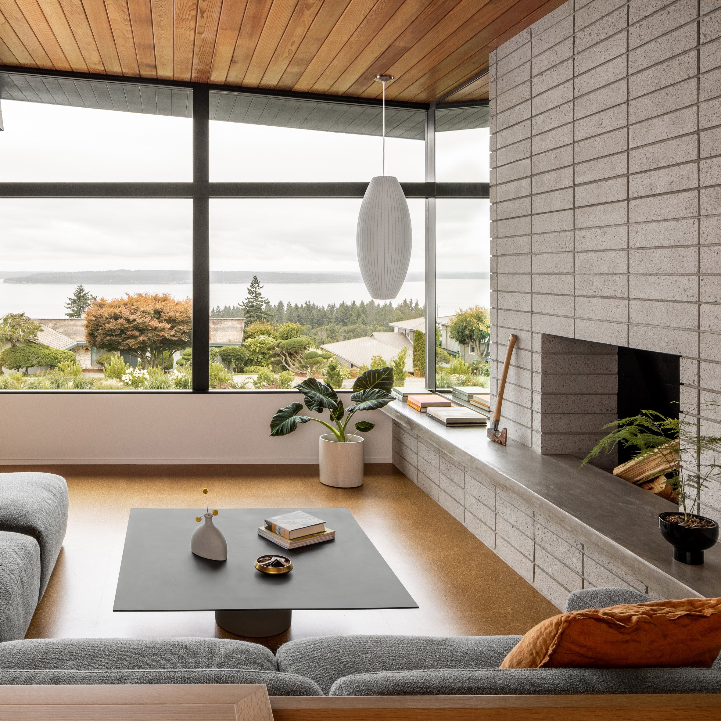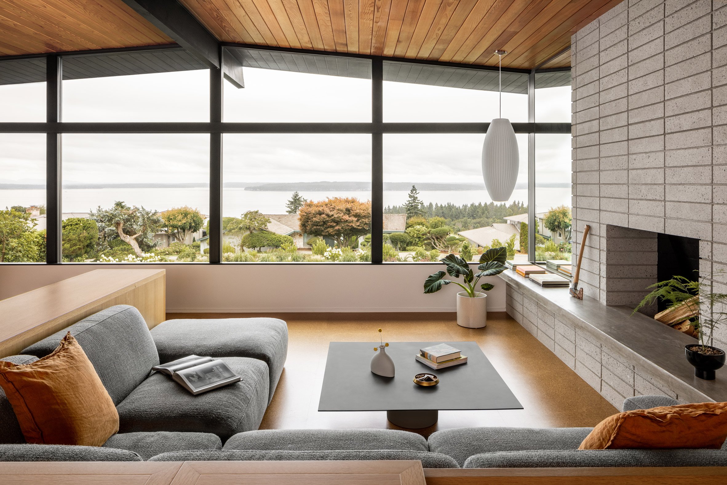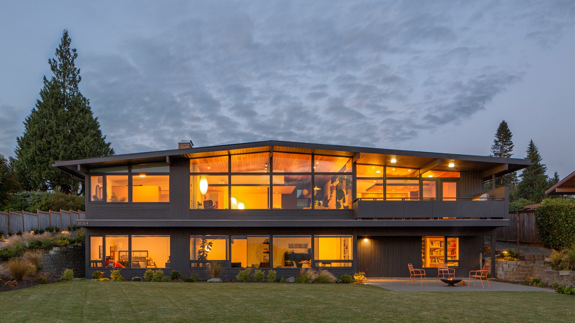 The Golden House is located in Shoreline, a community just north of Seattle, and sits on a large lot with views of the Olympic Mountains and Puget Sound.