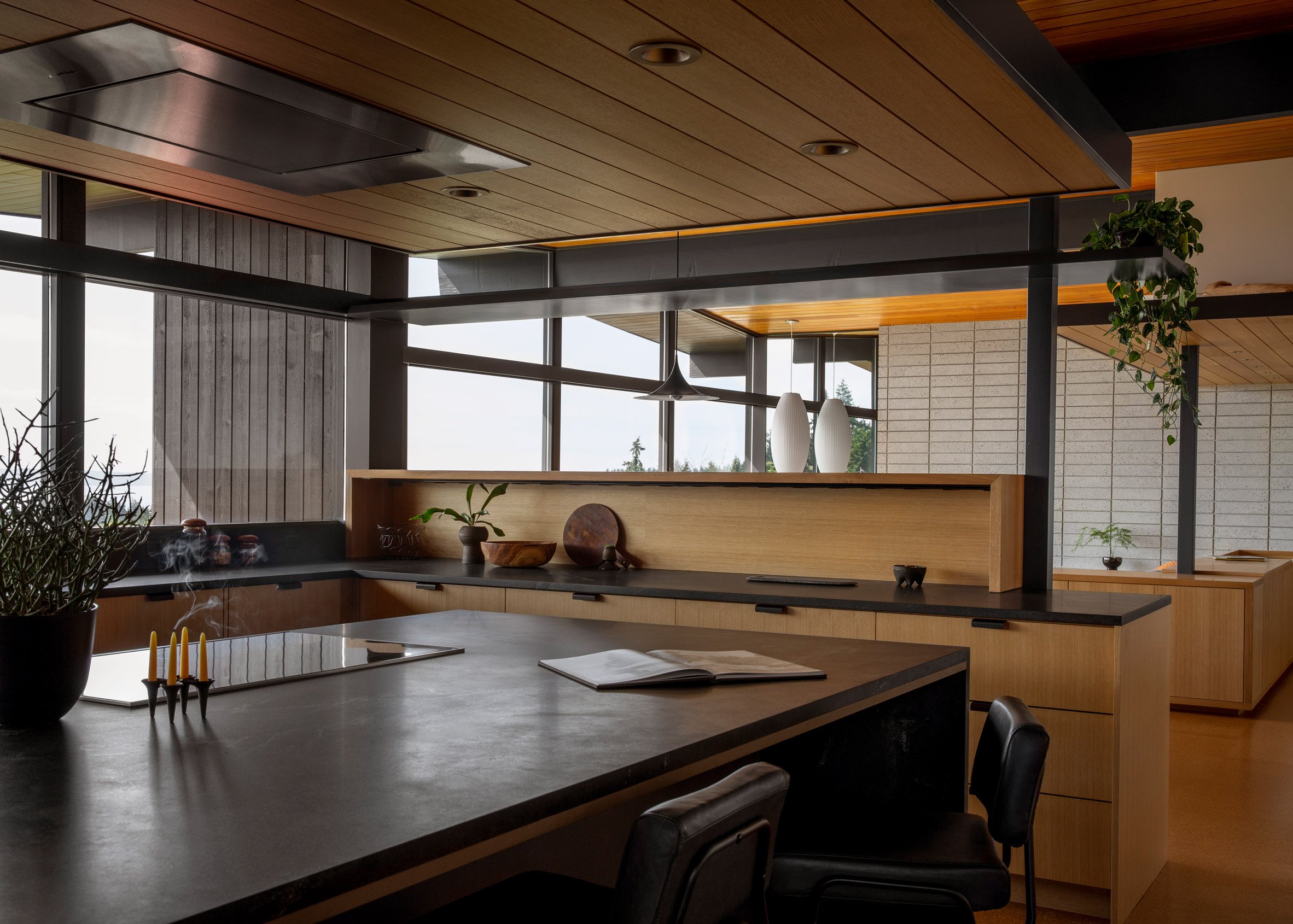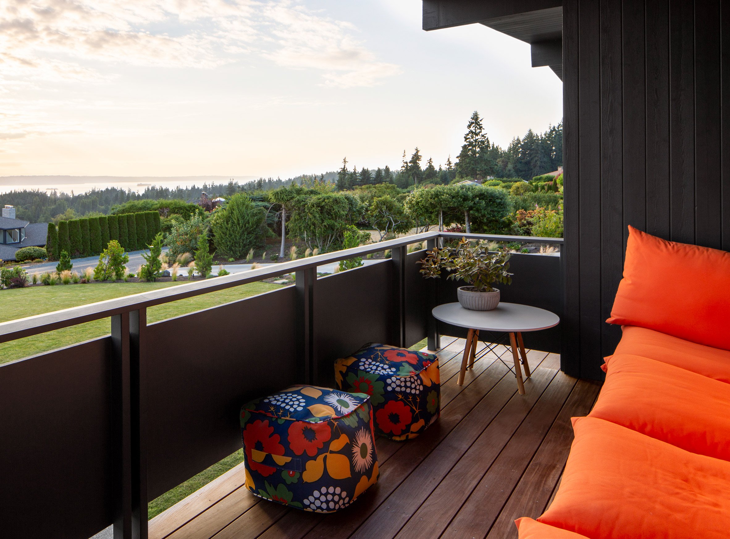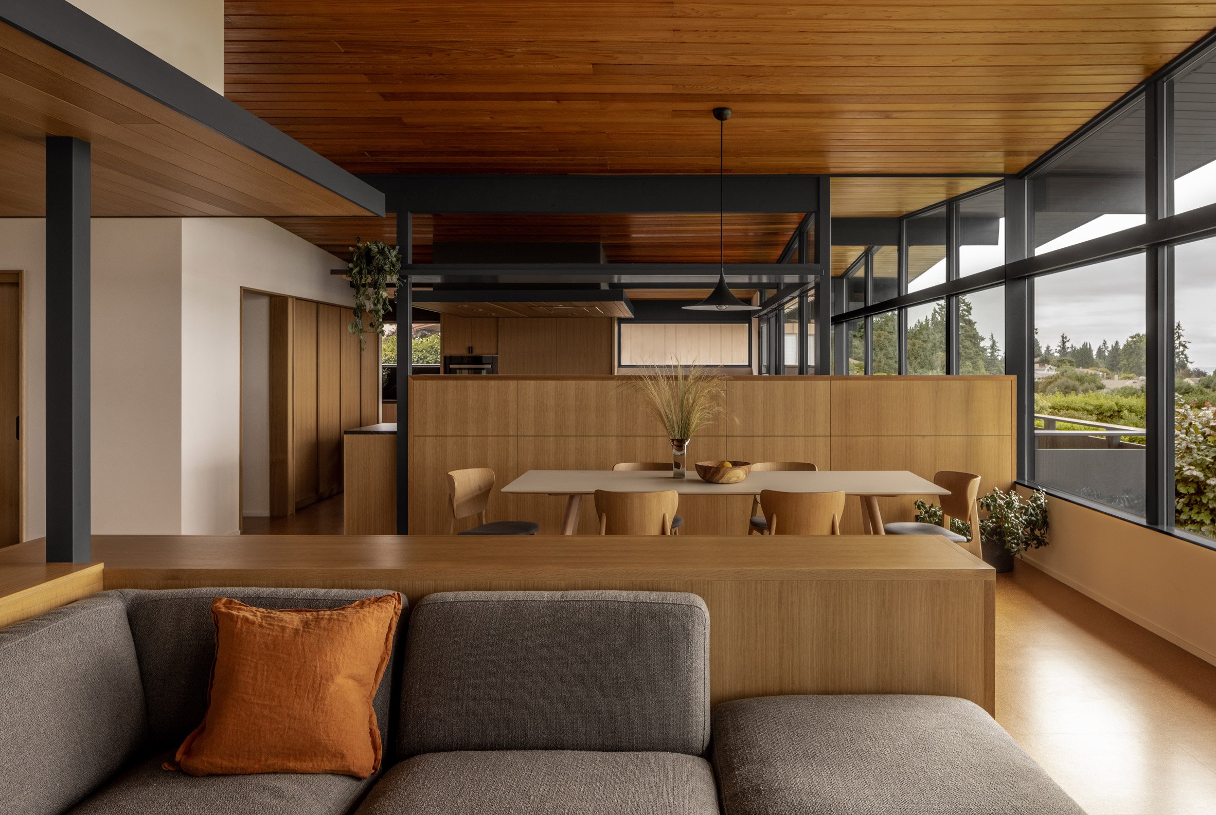 The Golden House is located in Shoreline, a community just north of Seattle, and sits on a large lot with views of the Olympic Mountains and Puget Sound.