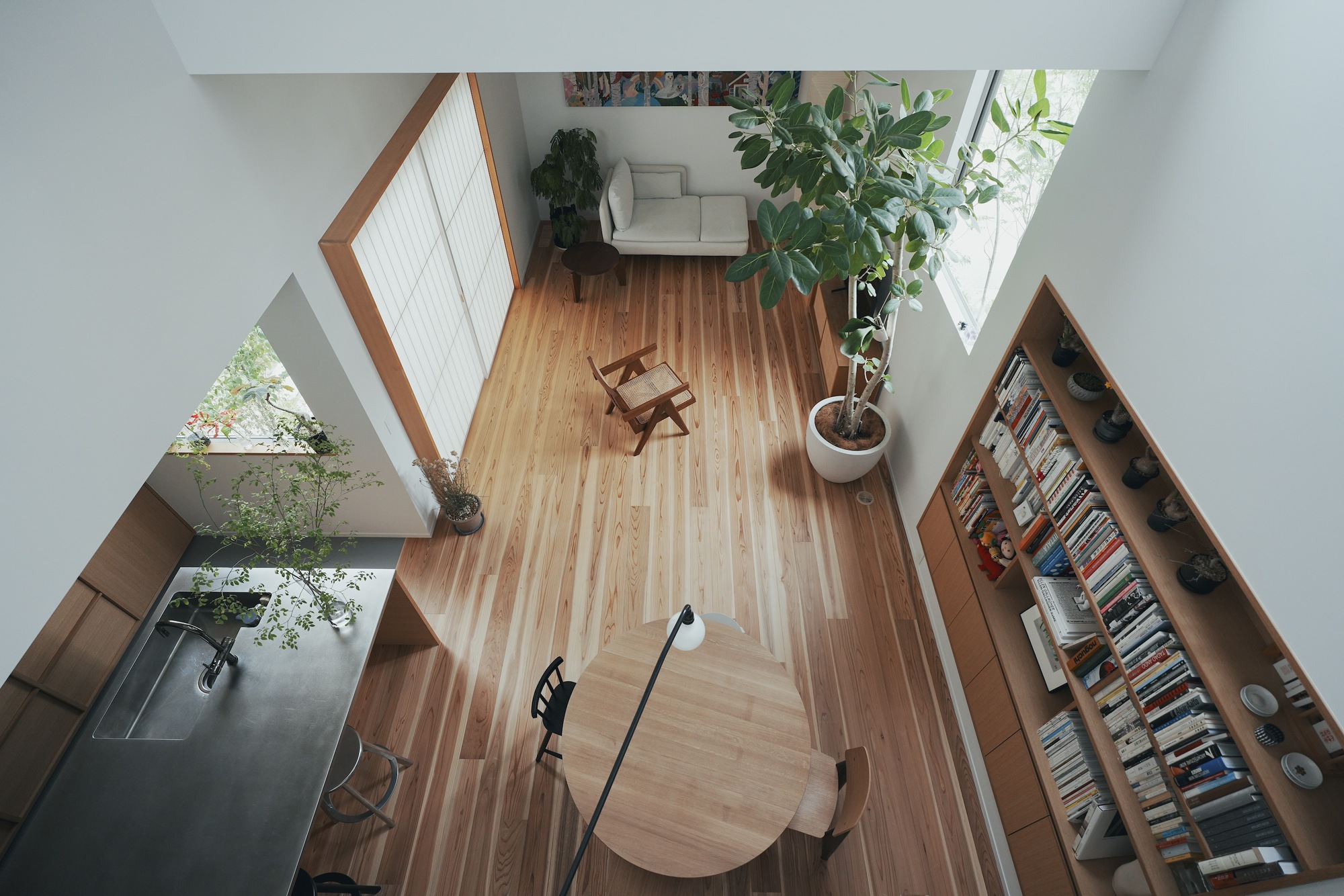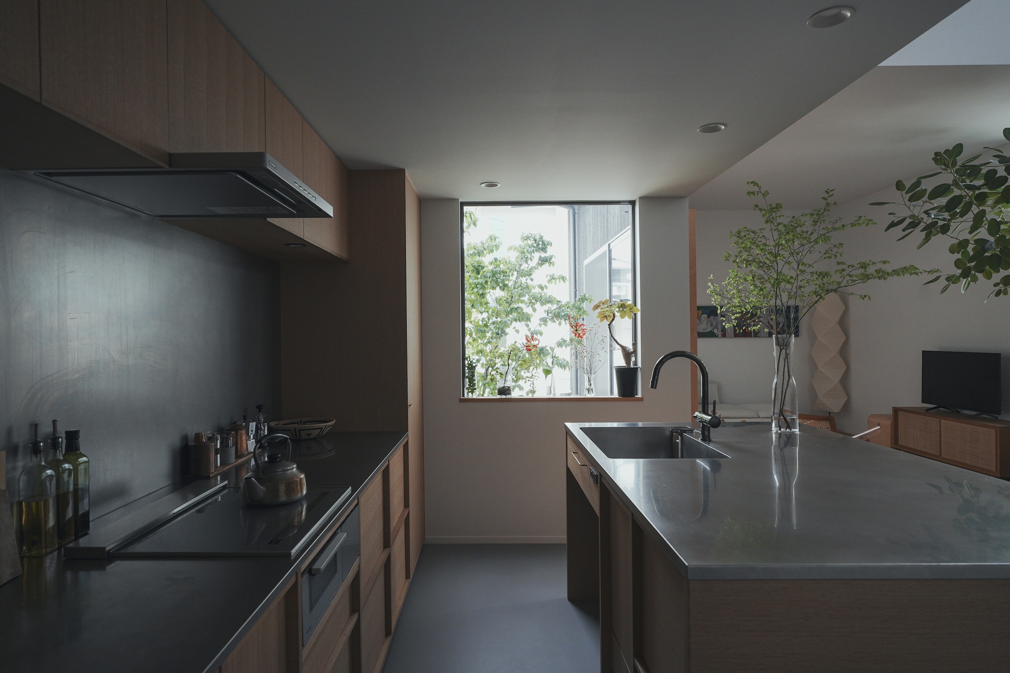 일본건축가 야마구치 건축가가 설계한 미나미마치 주택은 일본 마쓰야마에 위치한 미니멀 주택이다. 건축가의 심도깊은 설계는 시선을 내부 깊숙이 들어갈수록 공용공간과 사적공간으로 전환되는 특징을 보여준다. 이러한 명확한 분리에도 불구하고 다이닝키친과 홈오피스를 구분하는 유리문, 1층과 2층을 연결하는 보이드 같은 건축언어를 통해 미묘한 연결을 꾀한다.